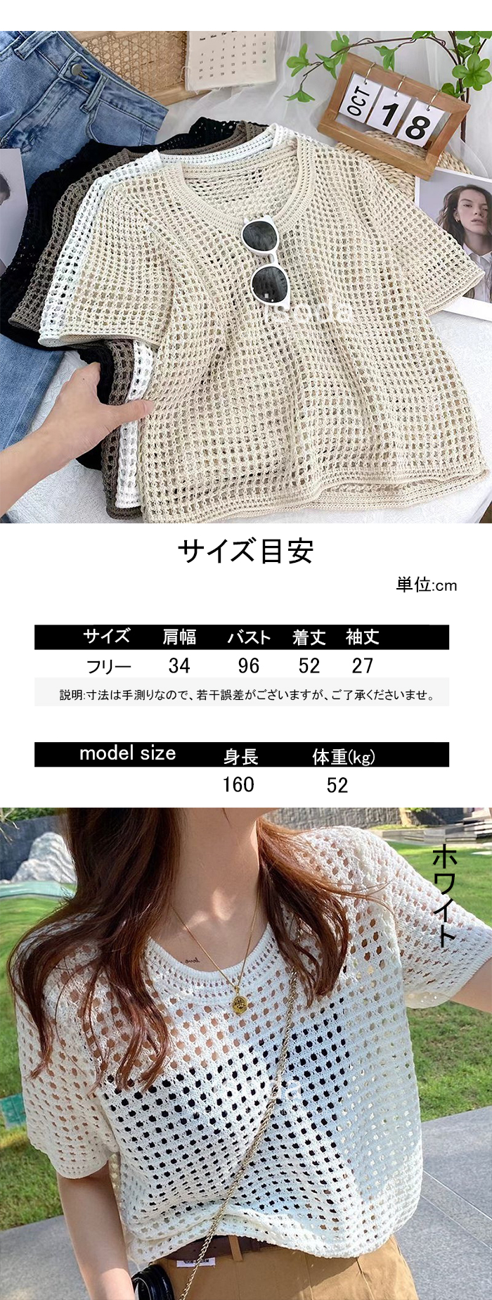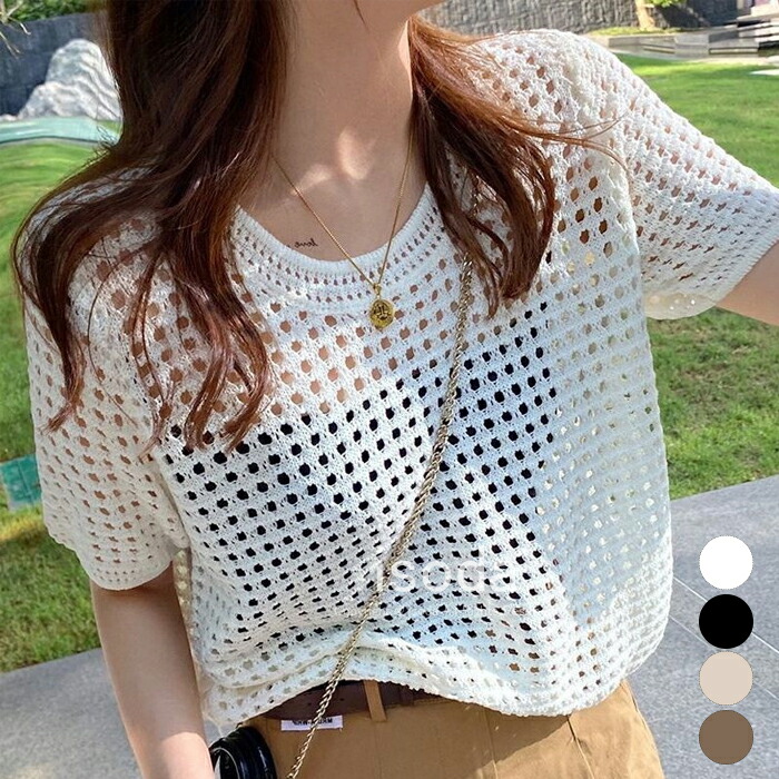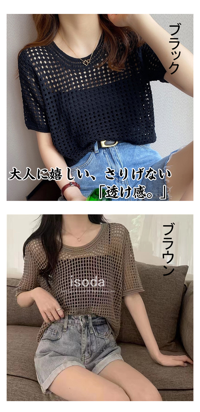 トップス レディース ニット 透かし編