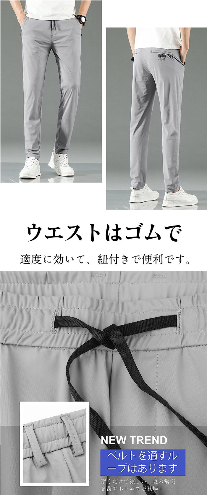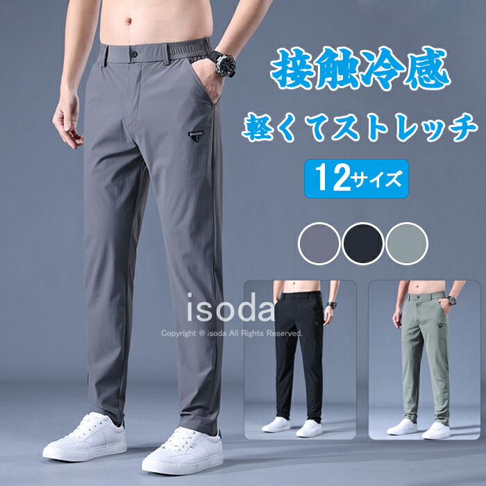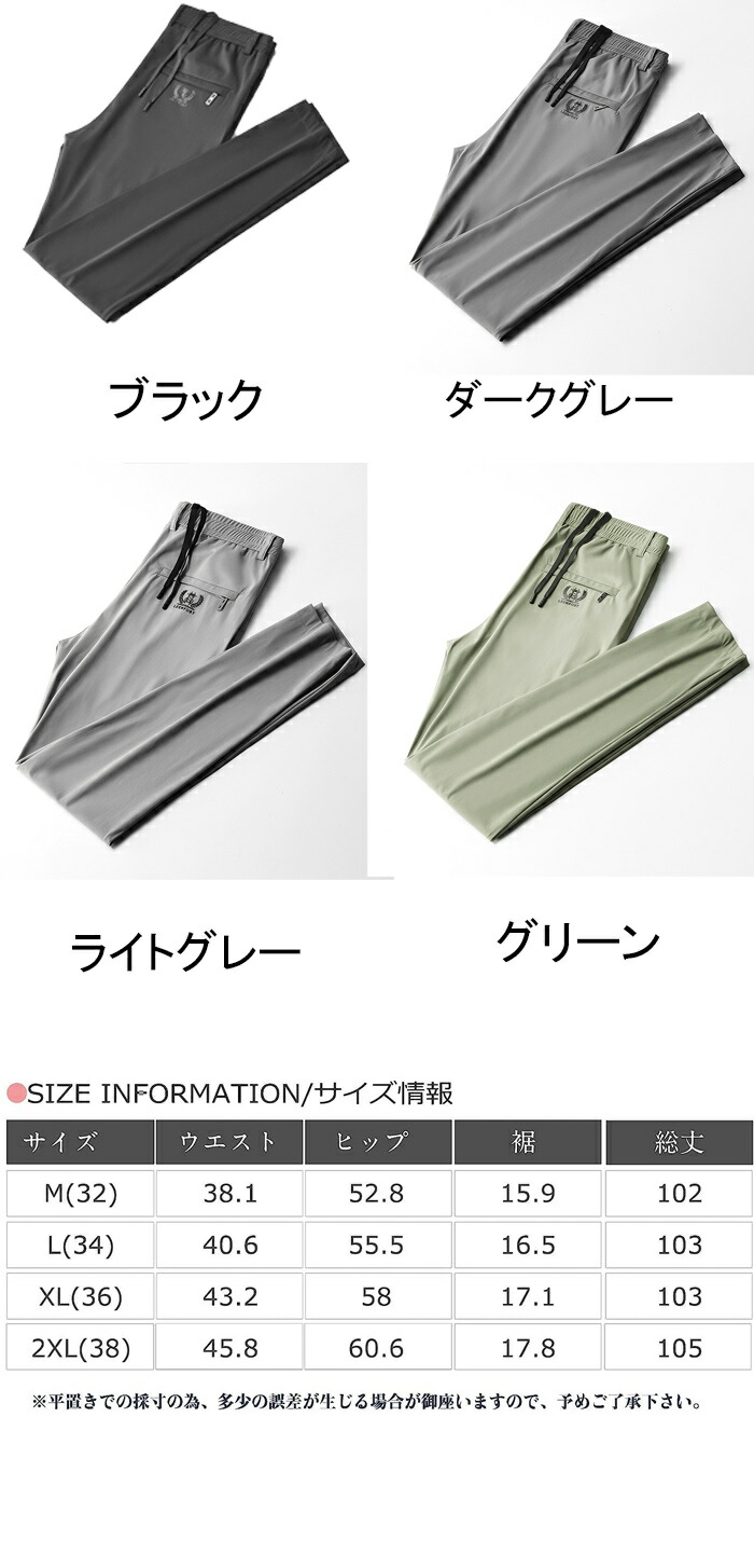 Item Information商品名 アイスシルク 接触冷感 パンツ メンズ 冷感パンツ ひんやり 涼しい ロングパンツ カジュアル 夏 薄手 美脚 長ズボン 通気 速乾 スポーツ イージーパンツ 無地 おしゃれ 大きいサイズ ストレート 夏 春 秋 クール感素材 ポリエステル説明