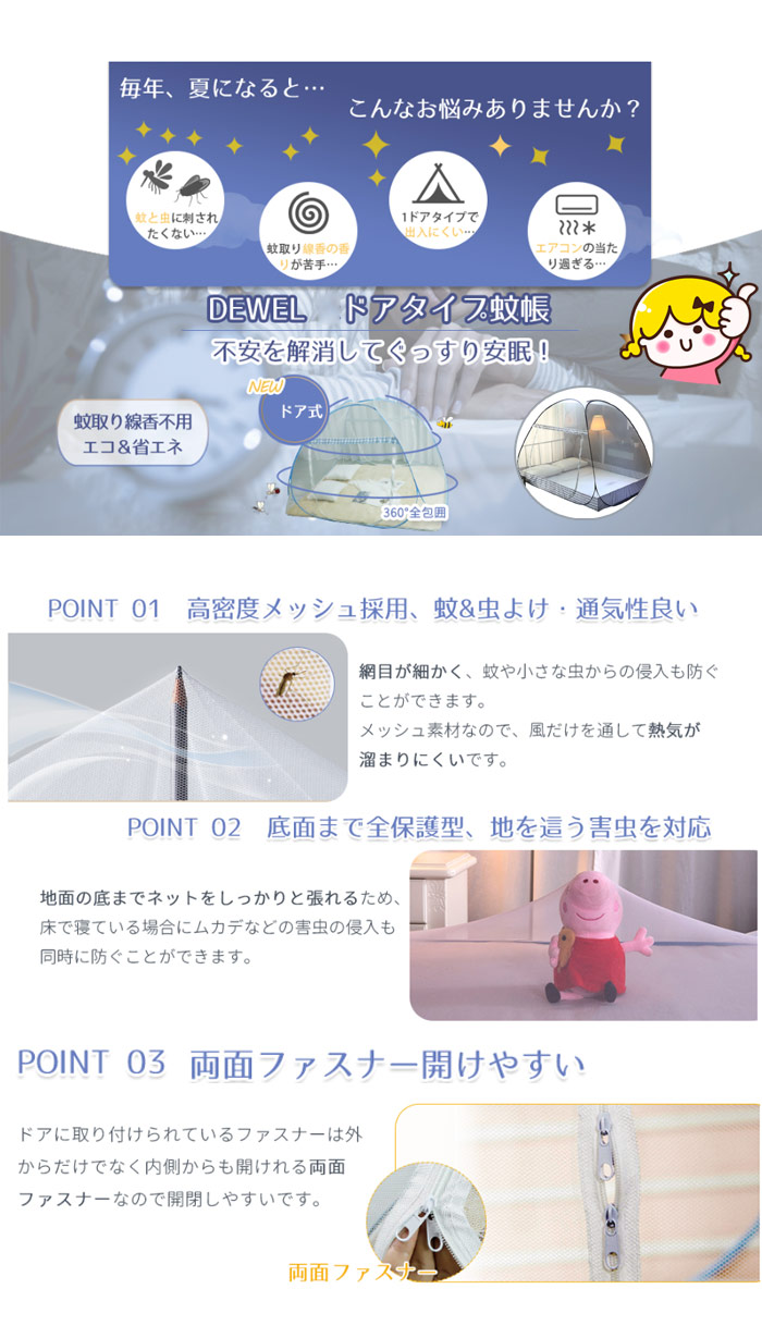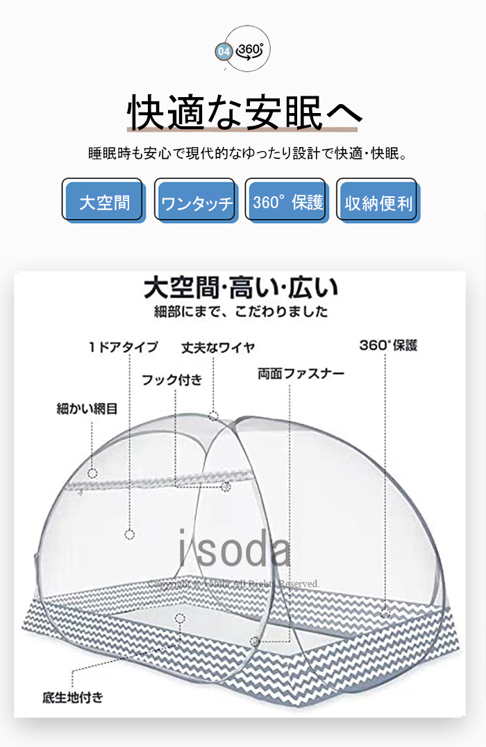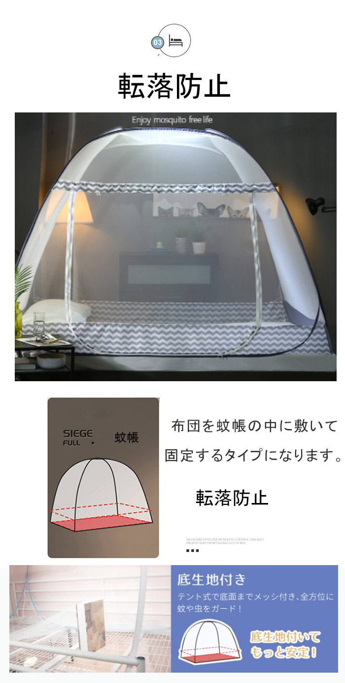 広げるだけの簡単設置 安心した睡眠をサ