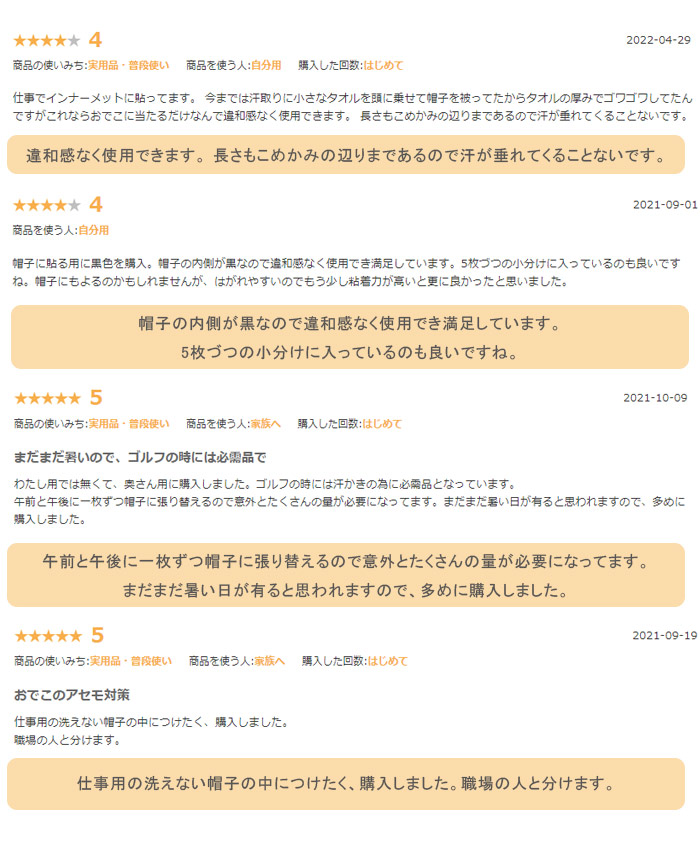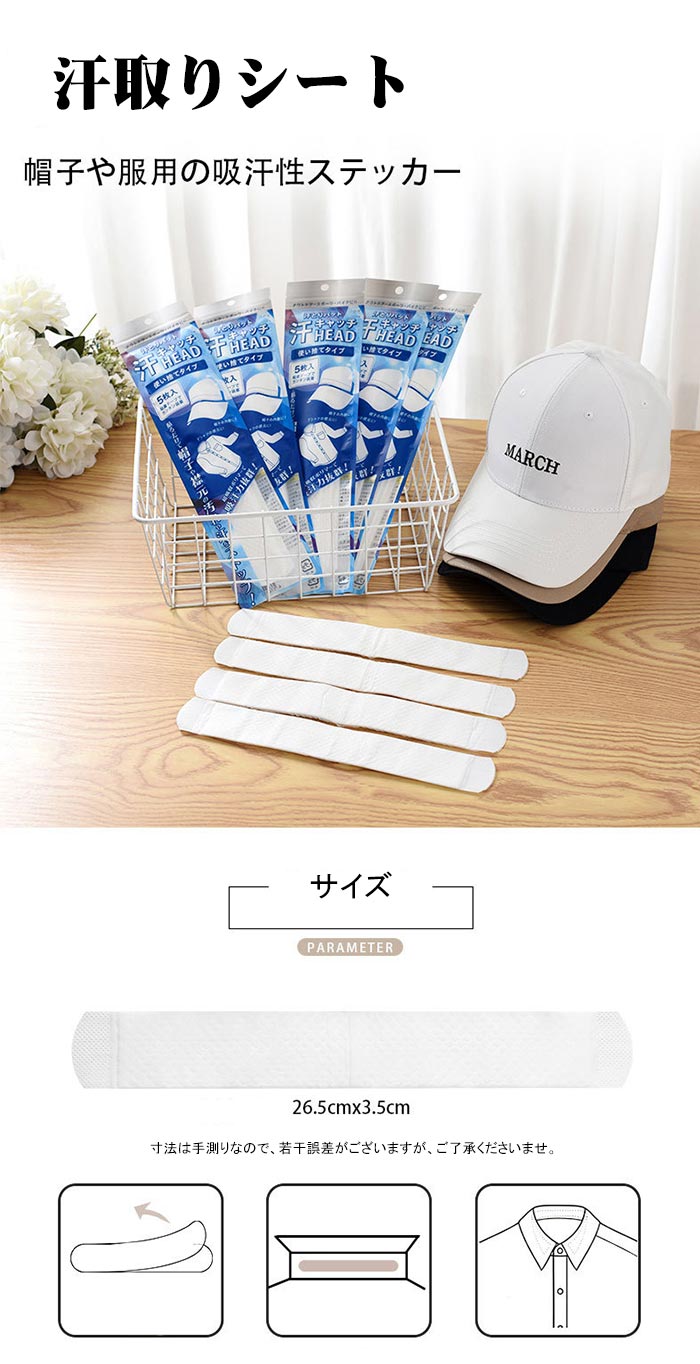 Item Information商品名 汗取りシート 帽子 汗取りパッド 襟 よごれガードテープ 汗吸収 防臭シート 無香料 あせジミ防止 ファンデーション付着 暑さ対策仕様