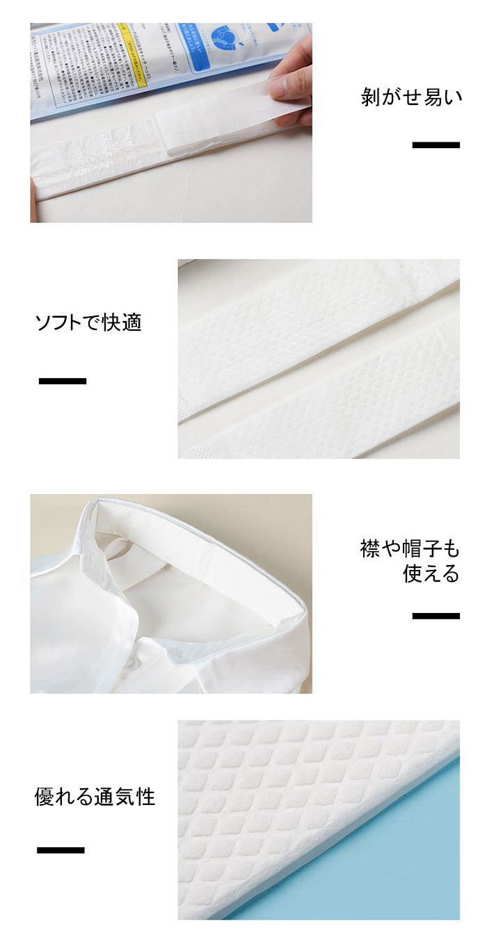 商品名 汗取りシート 帽子 汗取りパッド 襟 よごれガードテープ 汗吸収 防臭シート 無香料 あせジミ防止 ファンデーション付着 暑さ対策