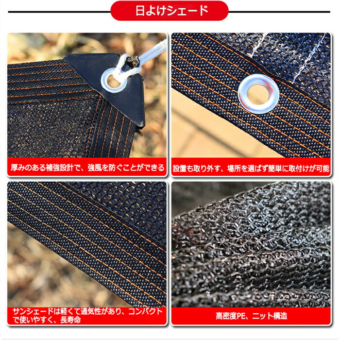 商品名:日よけシェード サンシェード 窓 外側 遮光率85%以上 目隠し 目かくし 遮熱ネット 紫外線 UV対策 省エネ 庭 スクリーン オーニング バルコニー 農業用遮光ネット 保育園厚く 庭立てかけ 外壁 玄関遮 大きいサイズ