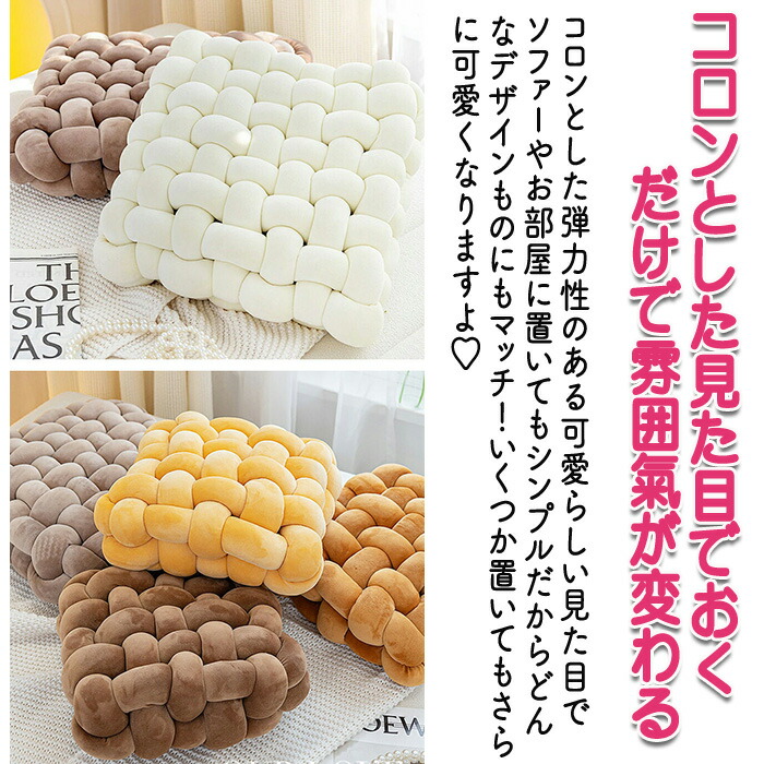 商品名:座布団 手編み座布団 クッション 手編みクッション. コンパクトクッション 四角 四角クッション かわいい ふわふわ 結び目クッション チャンキーニットクッション ホームインテリア インテリア 膝置き 手芸 ソファー椅子 枕 背もたれ 座椅子 北欧 シンプル ナチュラル オフフィス 在宅ワーク ソファークッション