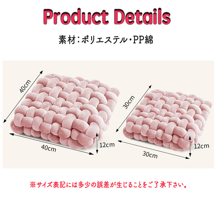 検索関連キーワード(商品の説明ではありません):座布団 手編み座布団 クッション 手編みクッション. コンパクトクッション 四角 四角クッション かわいい ふわふわ 結び目クッション チャンキーニットクッション ホームインテリア インテリア 膝置き 手芸 ソファー椅子 枕 背もたれ 座椅子 北欧 シンプル ナチュラル オフフィス 在宅ワーク ソファークッション 送料無料 椅子用 シートクッション 45*45cm チェアパッド 四角 ひも付き 座面クッション 椅子クッション 座布団 北欧 可愛い 夏 フロアクッション チェアパッド 体圧分散 座り心地良い 通気 滑り止め コーヒー 洗える ダイニングチェアクッション 汚れ防止 厚手 着脱式 厚く 変形しにくい おしゃれ 一人暮らし 読書 テレビ ごろ寝 大きい 自宅 家庭用 快適生活 子供対策 40*40cm 45*45cm 50*50cm ベージュ グレー モカ グリーン
