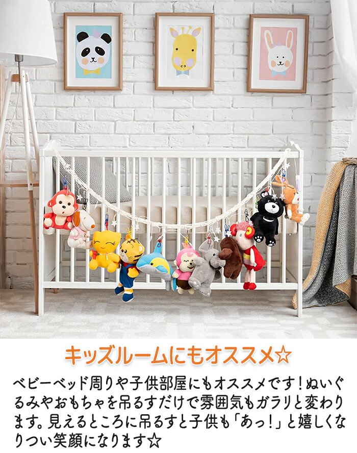 ぬいぐるみ吊り下げ収納 スッキリ整理整頓 ぬいぐるみ収納 壁掛けでぬいぐるみもスッキリ おもちゃ ドア掛け収納 見せる収納 装飾 高耐久 省スペース 多機能 多用途 取付簡単 ロープ