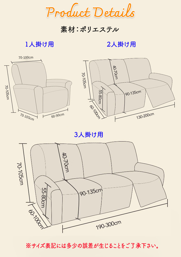 サイズ:1人掛け用・2人掛け用・3人掛け用
