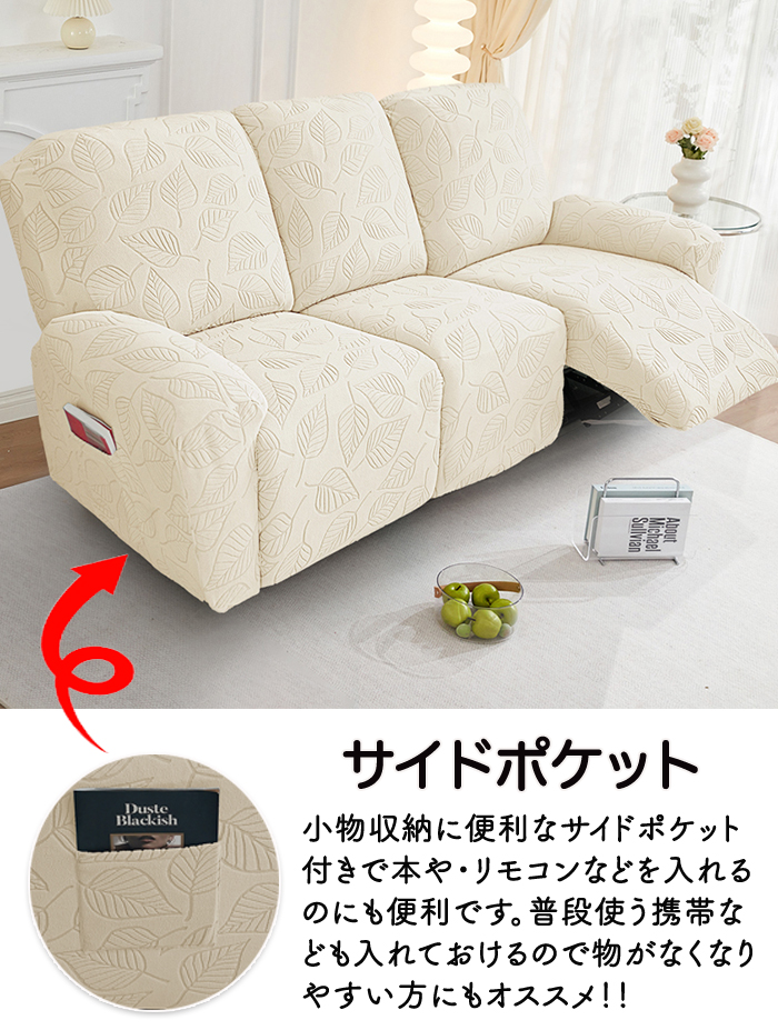 商品名:マッサージチェア ソファーカバー ソファー リクライニングチェアーカバー 洗濯可能 洗える 椅子カバー インテリア おしゃれ 1人掛け 2人掛け 3人掛け ペット 子供 汚れ 多機能 色褪せがない サイドポケット 葉っぱ柄 葉っぱ おしゃれ かわいい ゴムバンド 一人暮らし 家庭 快適生活