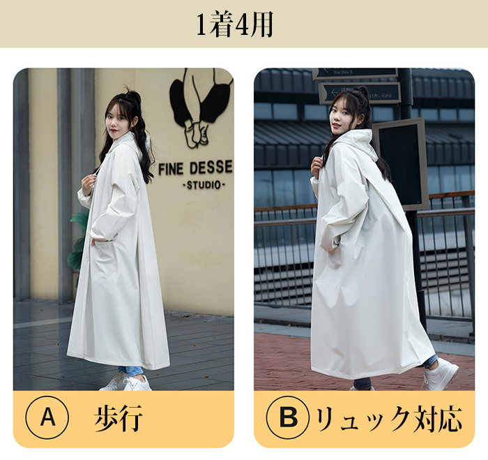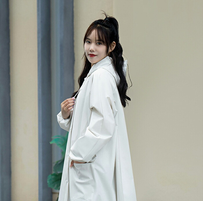 ★ロング丈のデザインにより、全身をしっかりと覆い、足元まで雨から守ります。通勤通学や自転車運転、雨中作業などに最適です。特に梅雨や台風の時期には非常に役立ちます。