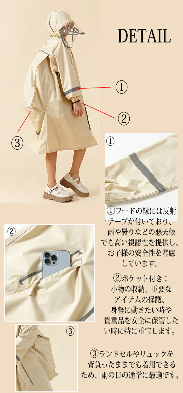 検索関連キーワード(商品の説明ではありません):レインコート キッズ 女の子 男の子 ランドセル 子供 レインウエア レインポンチョ 通園 通学 遠足 梅雨対策 子供レインコート カバー 防水 防風 通学 男女兼用 雨具 収納袋付き 紐調整付き 携帯バッグ付き 収納バッグ 洗濯機 反射材 自転車 小学生 中学生 男女兼用 梅雨対策 雨の日 入学 入園 通園 通学 遠足 旅行 アウトドア