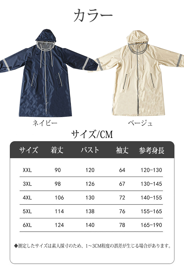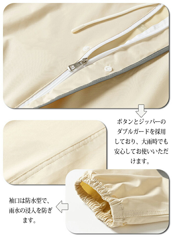 ★ご注意:レインコートの両サイドのポケットは、一つは小物を収納できる本物のポケット、もう一つは装飾用のポケットです。