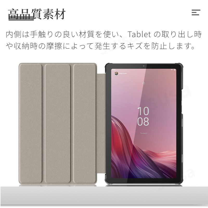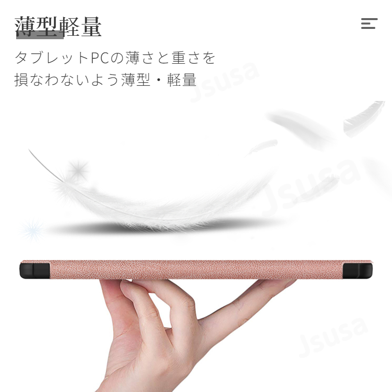 ●表面は綺麗で高級感のあるPUレザー仕様、内側は手触りの良い材質を使い手触りの良い材質を使い、 Tablet の取り出し時や収納時の摩擦によって発生するキズを防止します。
