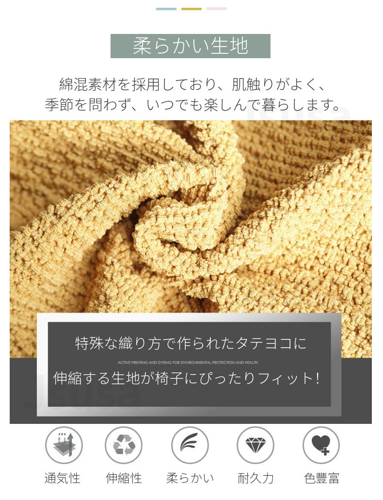 上からかぶせて座面と背もたれ、肘受けの隙間に余分を挟み込むと生地が伸縮しチェアにフィットしてくれます。