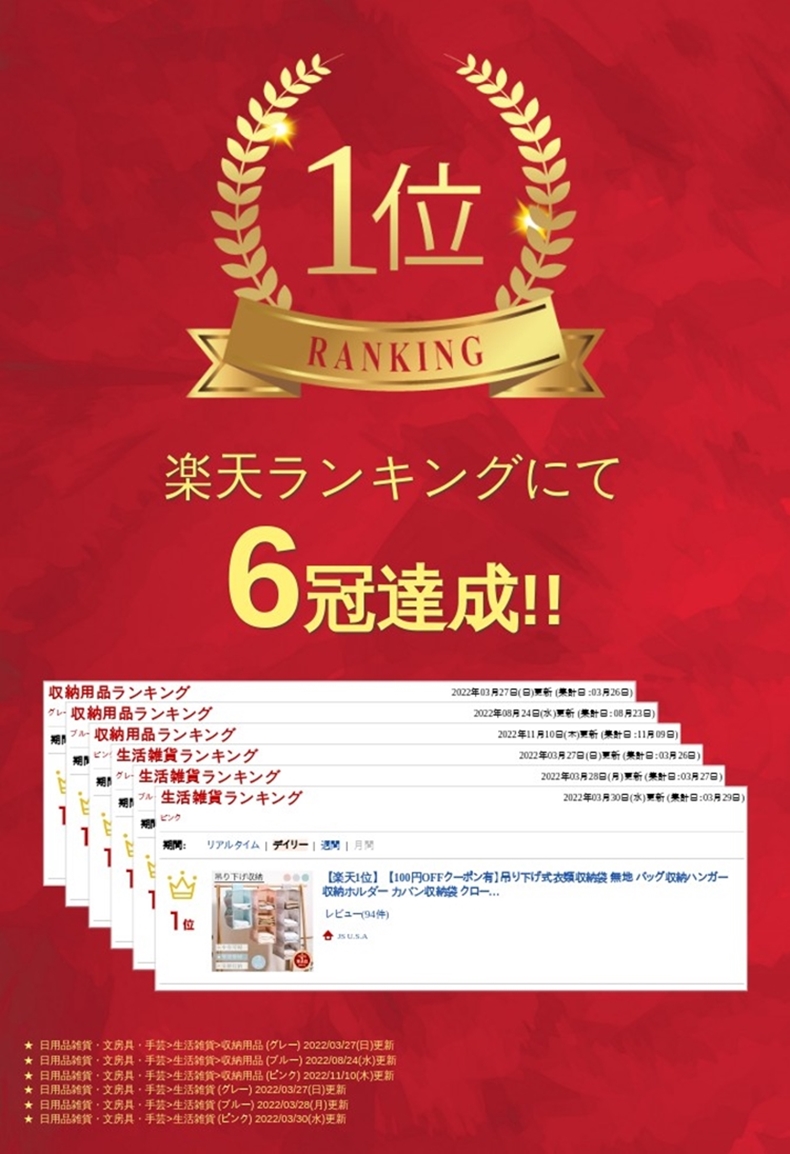 まとめてご購入で400円OFF!吊り下げ衣類収納袋!