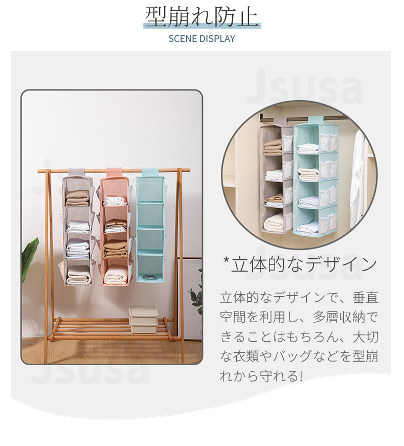 立体的なデザインで、垂直空間を利用し、多層収納できることはもちろん、大切なバッグや衣類などを型崩れから守れる!