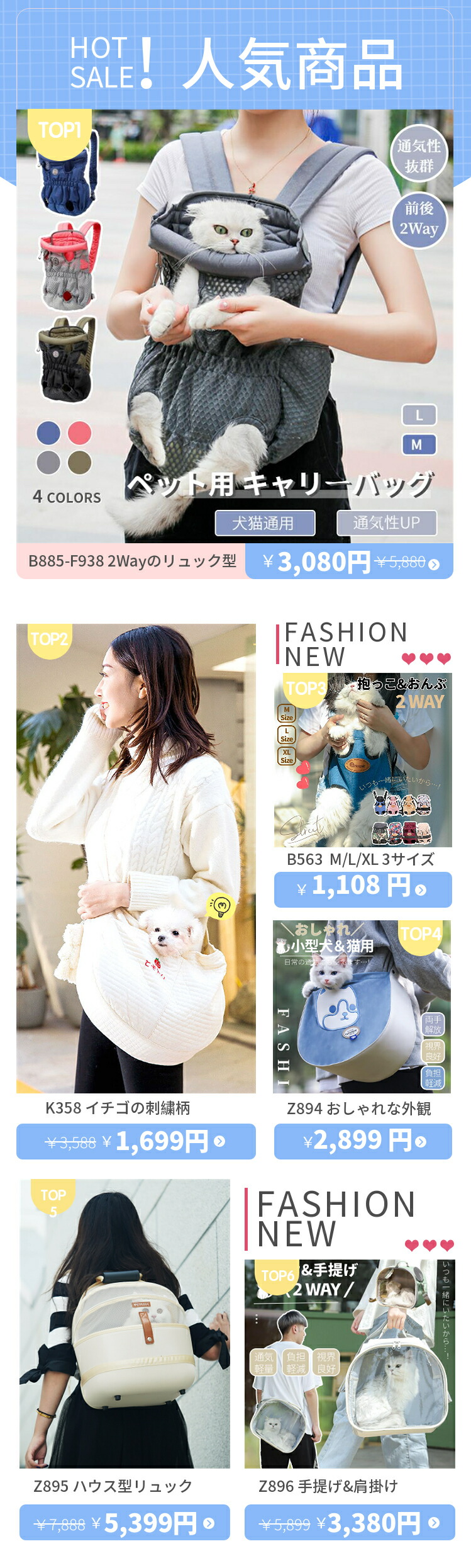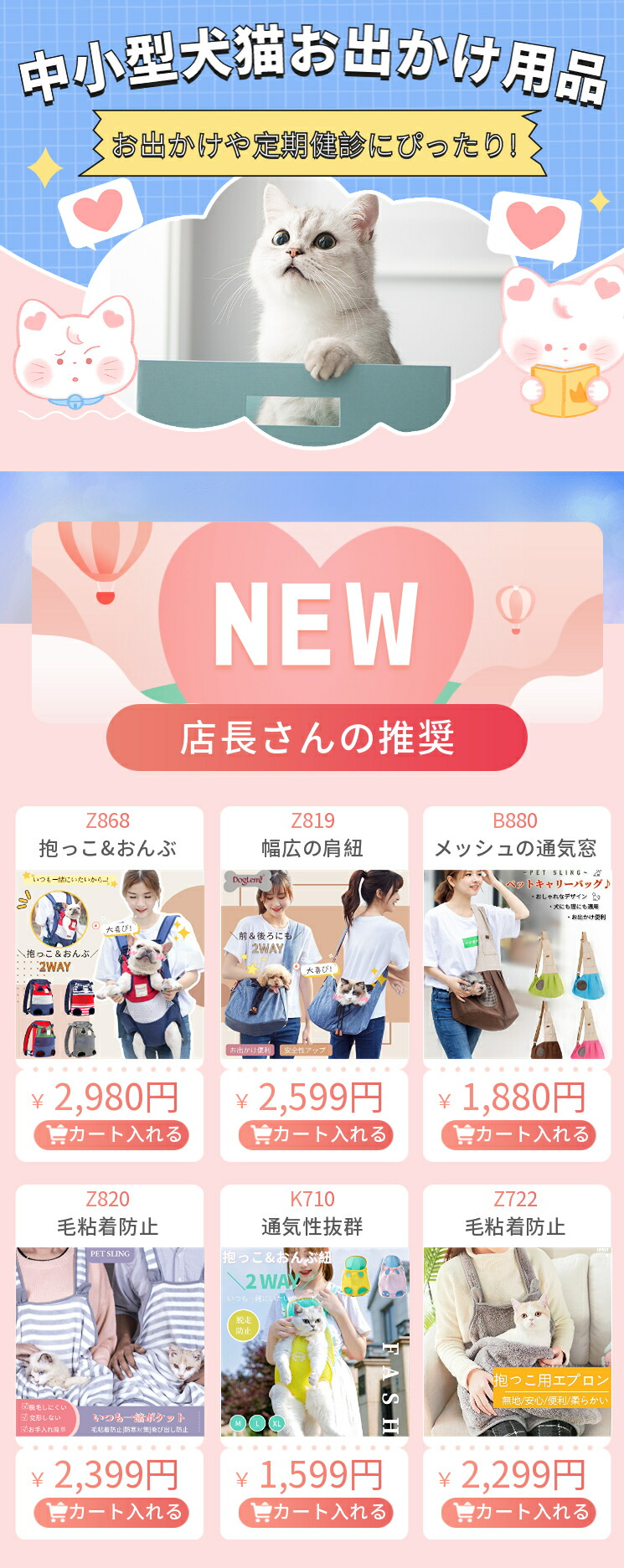 ☆猫や中小型犬を抱っこできるため、人混みの中でも愛犬と一緒に散歩できます。