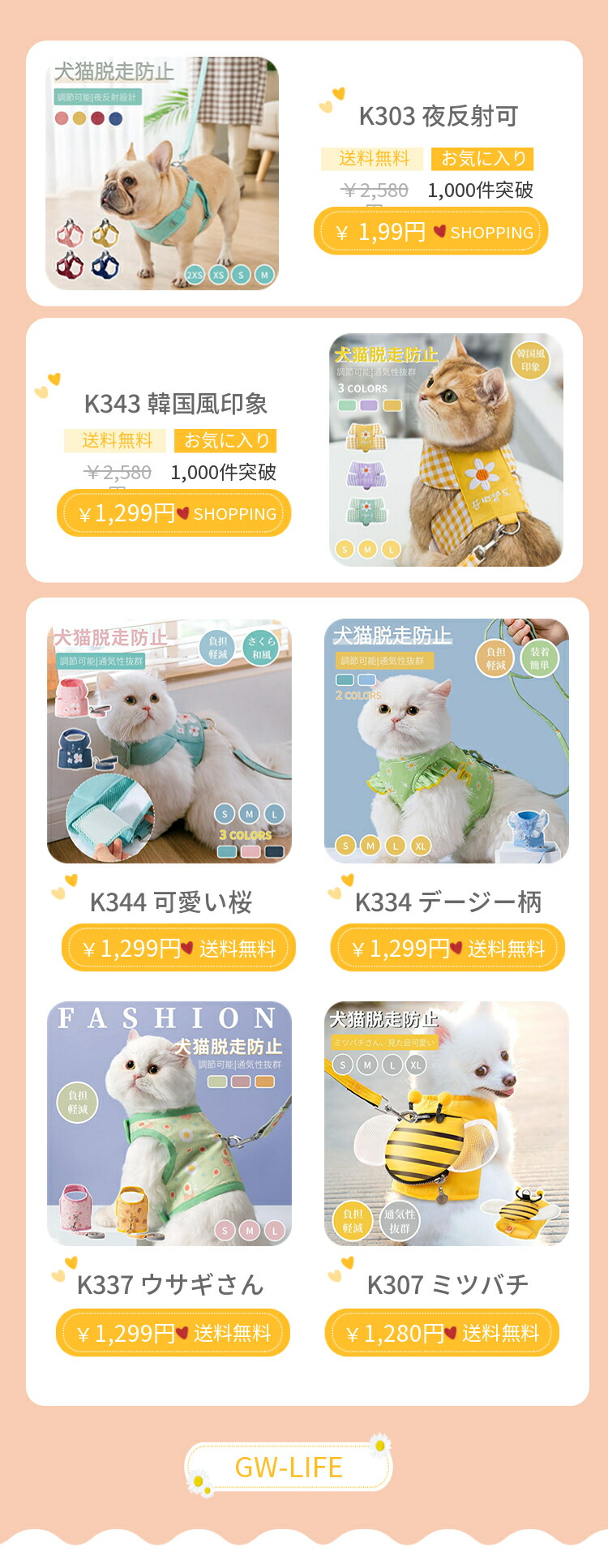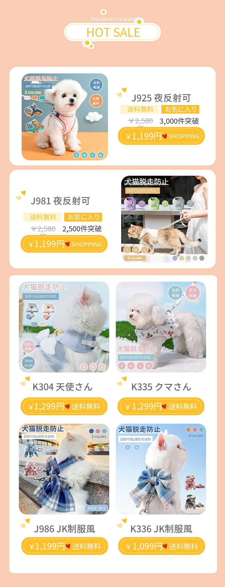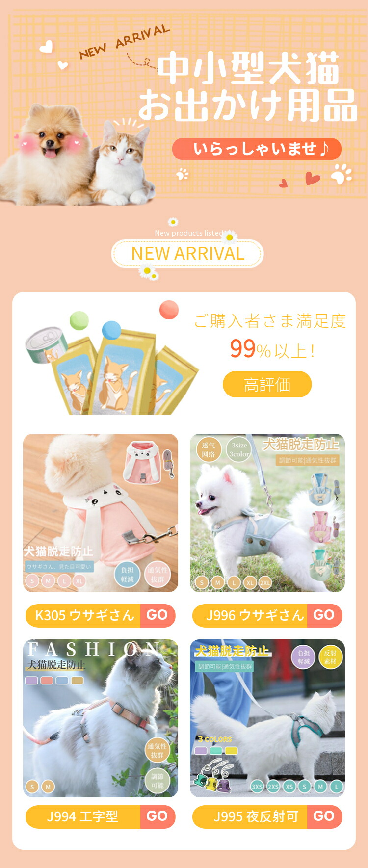 新登場!犬猫用胸当てハーネスリードセット!
