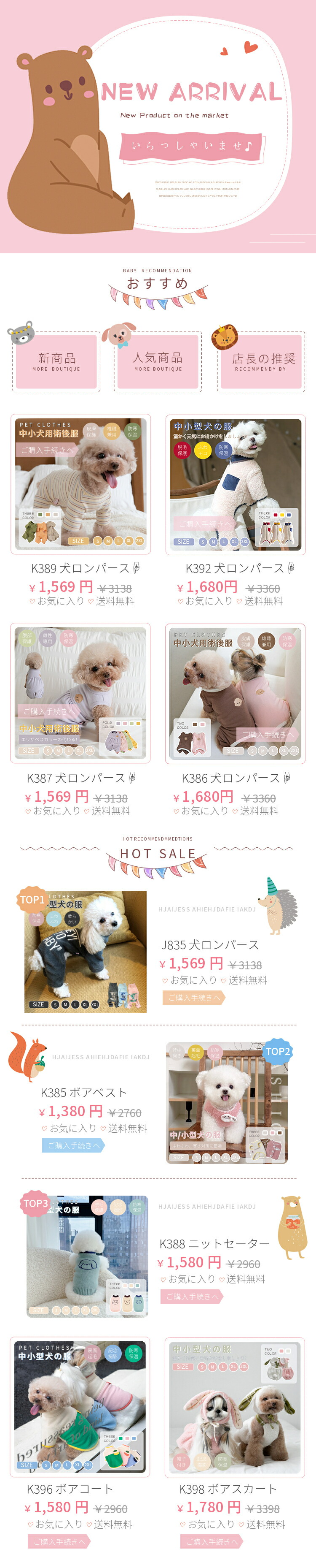 秋冬の人気ファッションアイテム!暖かい中/小型犬洋服