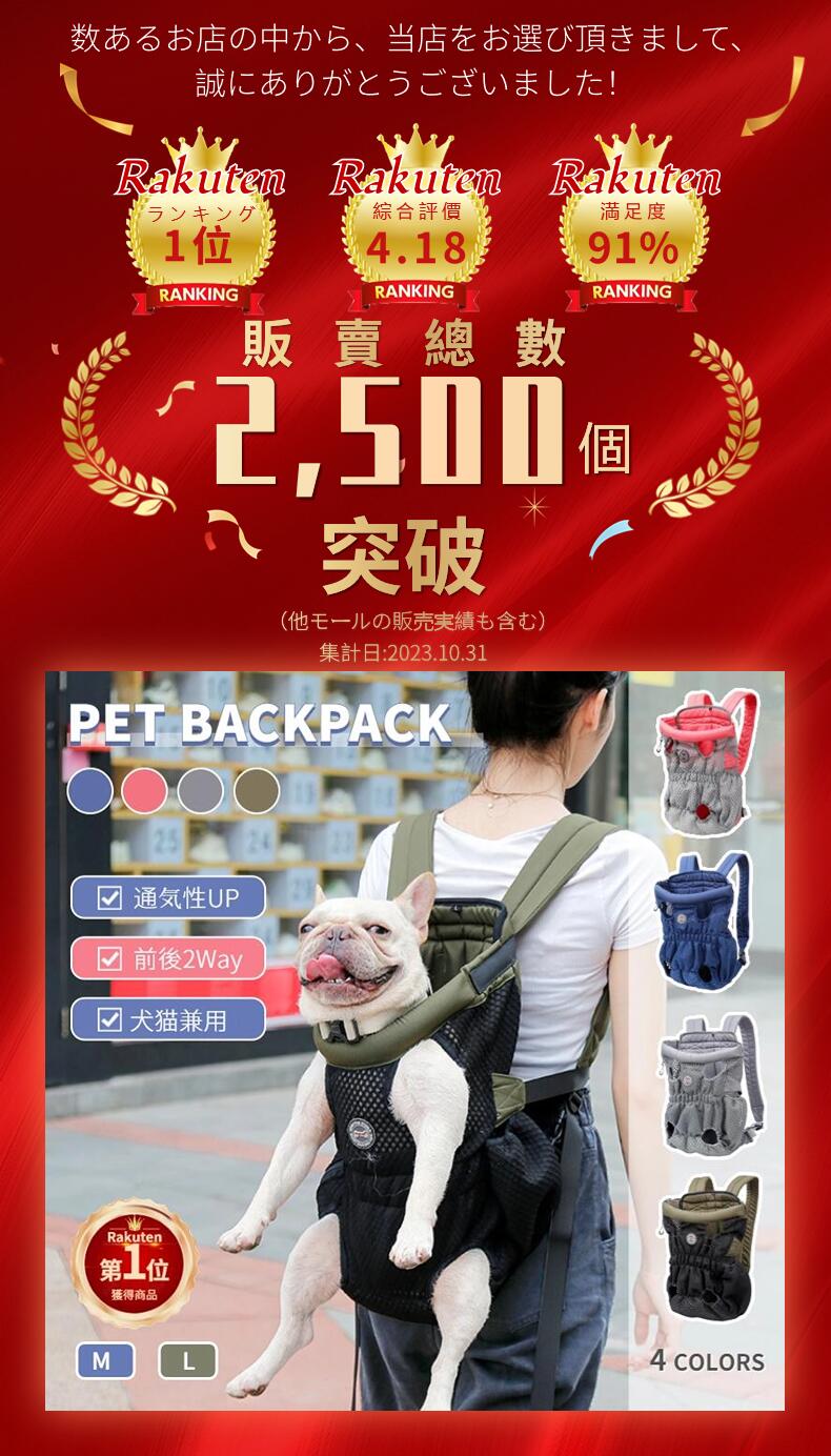 累計販売2000以上 今売れている リピーター多数 M Lサイズ 全4色 ペット用 抱っことおんぶ兼用バッグ 飛び出し防止 安全 2Wayのリュック型キャリーバッグ