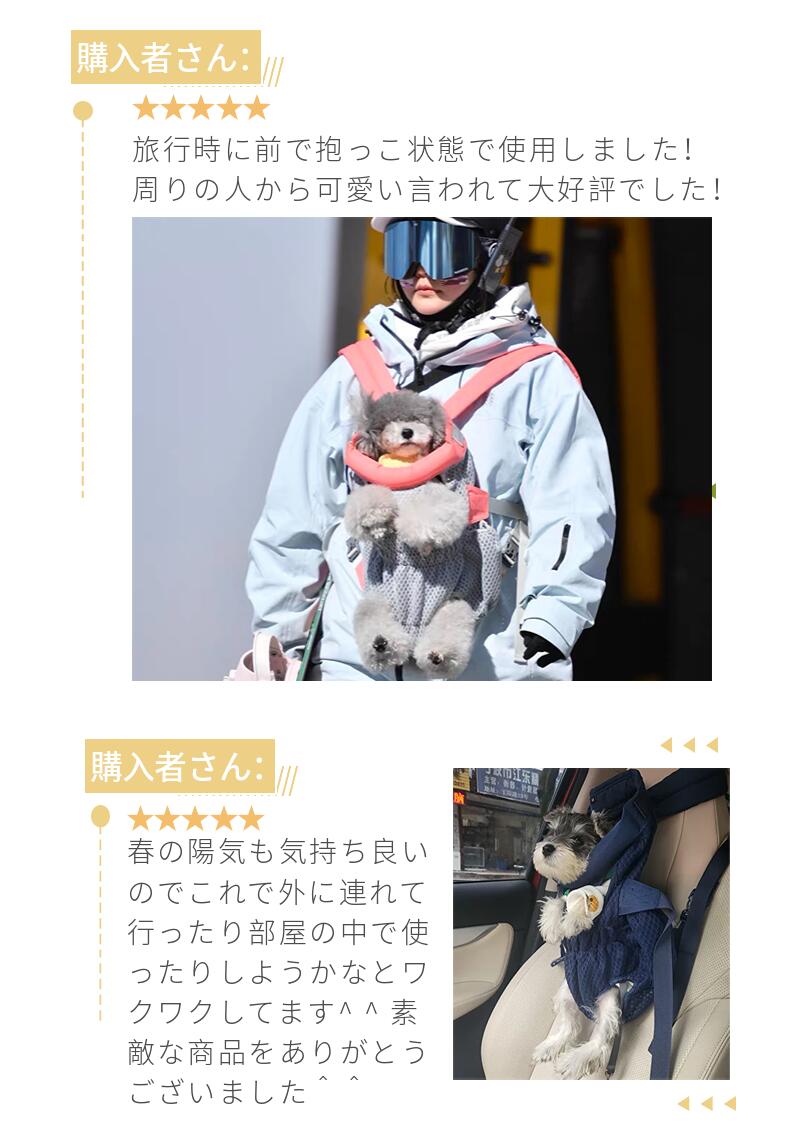 腹部に圧迫しない窮屈感なし超安心のペットリュックです!ペットにも飼い主にも優しい設計になっております。