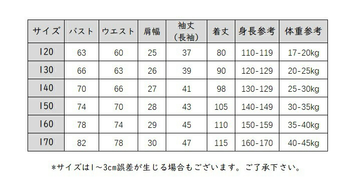 サイズ : 120cm 130cm 140cm 150cm 160cm 170cm