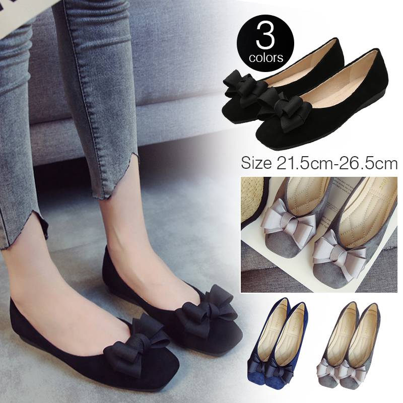 一部即納 パンプス レディース 靴 パンプス ぺたんこ 黒 フォーマル シューズ スクエアトゥ リボン フラットシューズ コーデ フラット ローヒール スエード 痛くない 歩きやすい オフィス 立ち仕事 疲れない 入学式 就活 通勤 冠婚葬祭 春夏秋冬 黒 灰 21.5~26.5cm