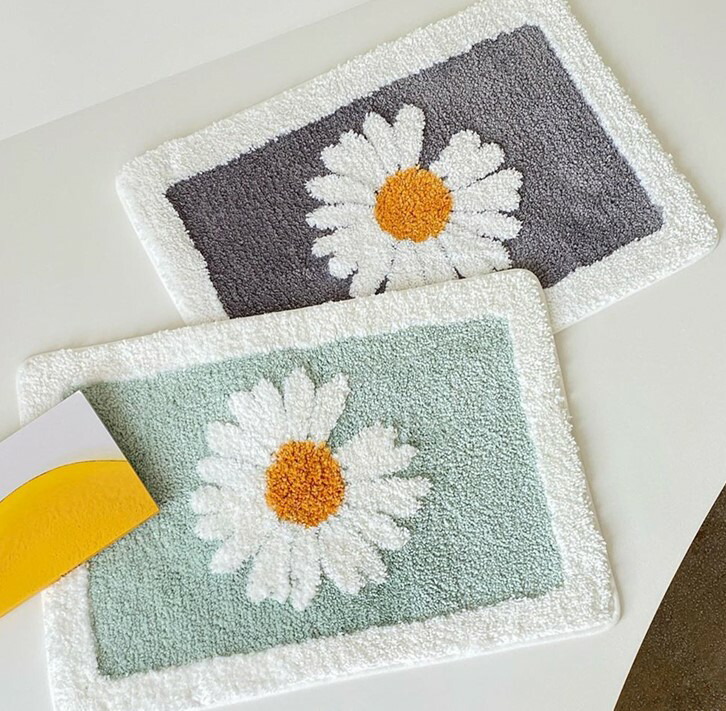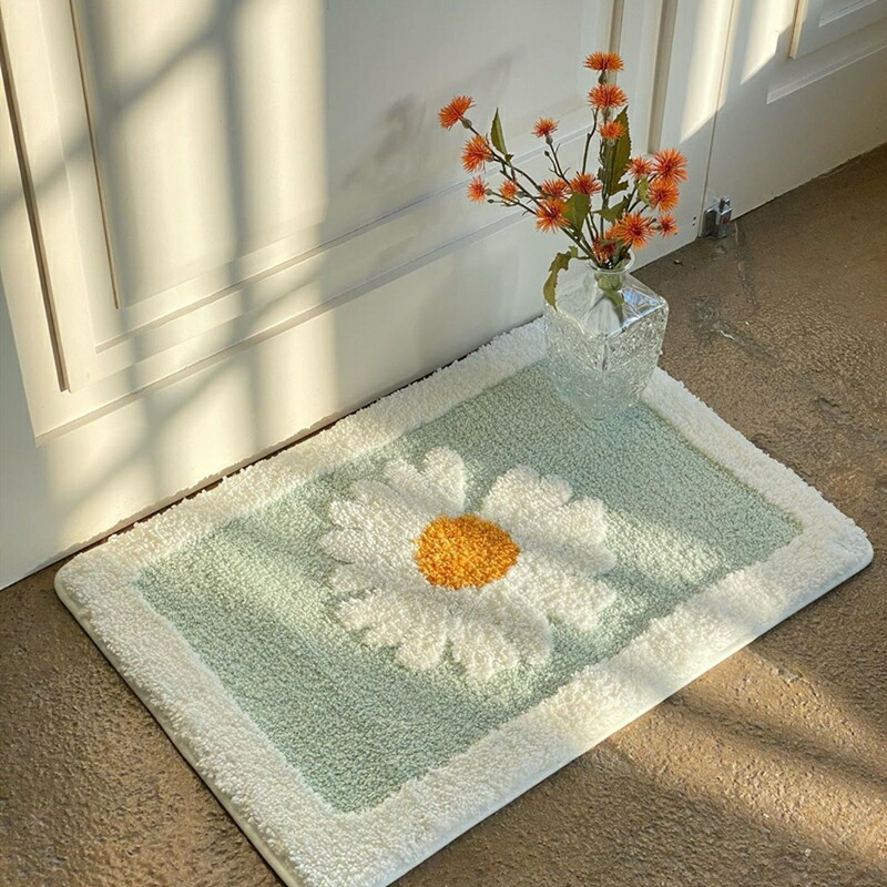 45cm×65cmバスマット足ふきマット花柄おしゃれ韓国雑貨インテリアマットお風呂グレーグリーンホワイト白北欧玄関マット絨毯かわいい洗える室内タオル地柔らかい滑り止めフラワー部屋ラグシンプル