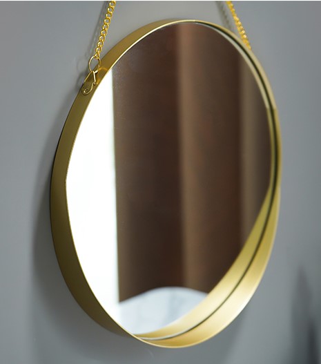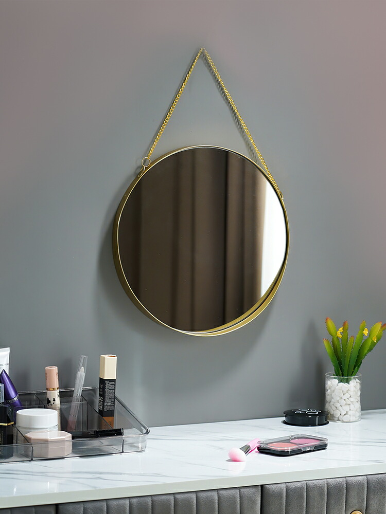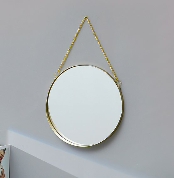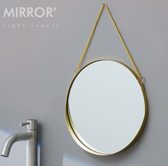 壁掛け鏡ミラーデザイン雑貨インテリアおしゃれかわいい可愛いゴールド丸円大きい 韓国韓国雑貨化粧鏡北欧チェーンフレームウォールミラー軽量玄関ラウンド