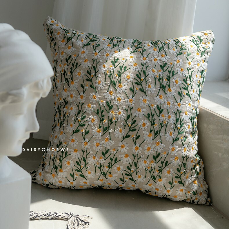 花柄ドットクッションクッションカバーカバー白ホワイトベージュフラワーもこもこ大きい大きめ45cm×45cm北欧おしゃれ可愛いデザイン洗える四角正方形韓国雑貨インテリア北欧ふわふわフリンジ刺繍