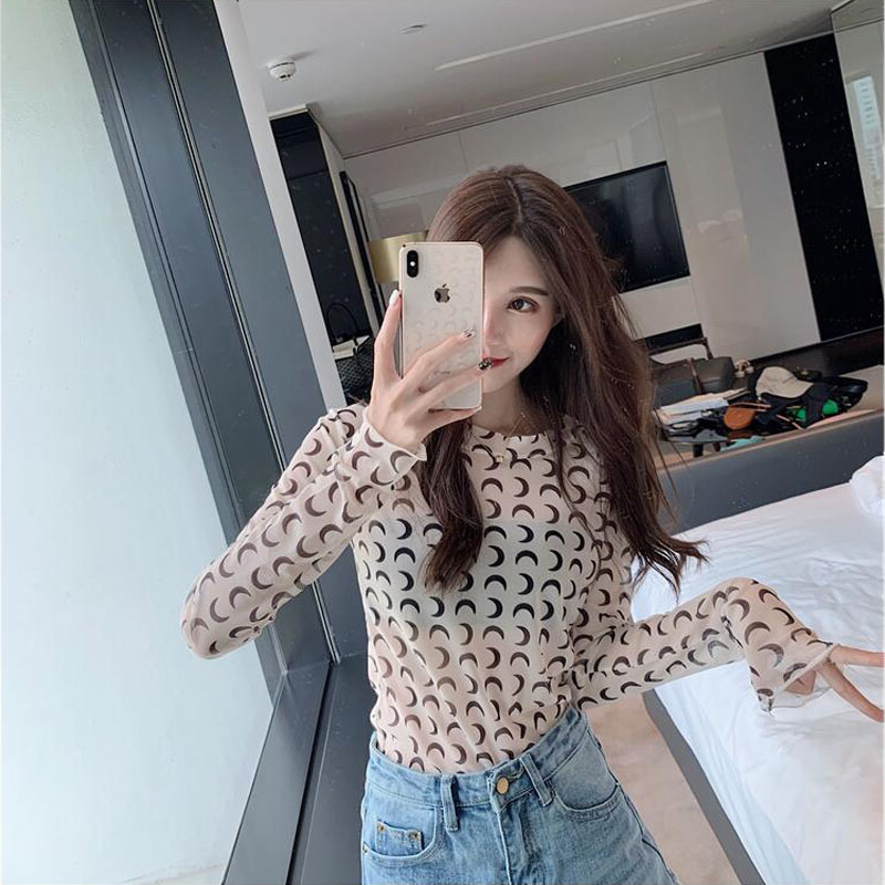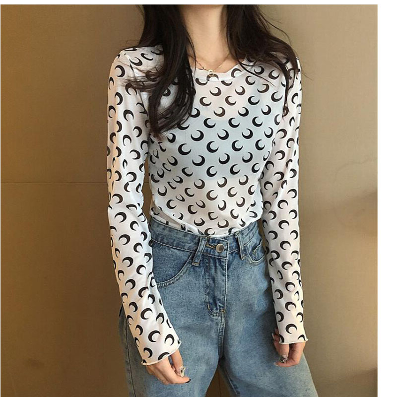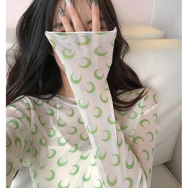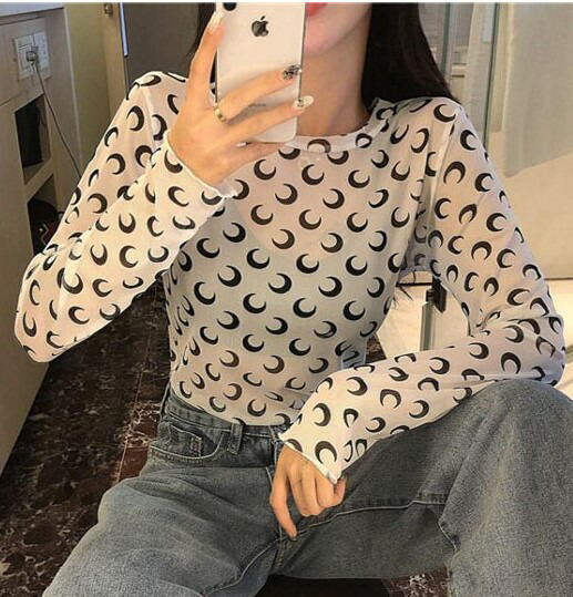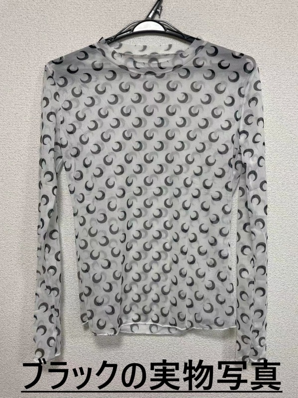 月柄3色シースルートップス長袖カットソ