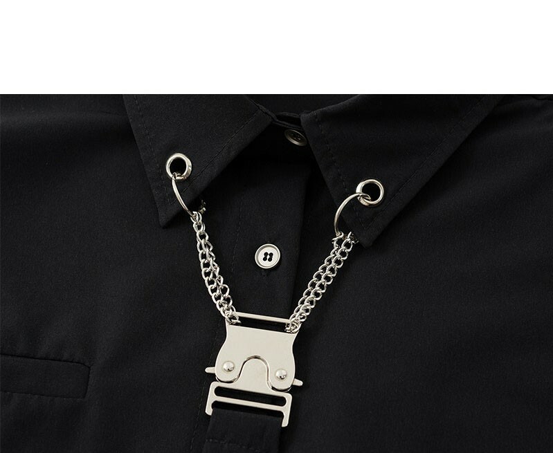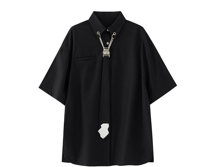 ネクタイ付ブラックシャツブラウス半袖ト