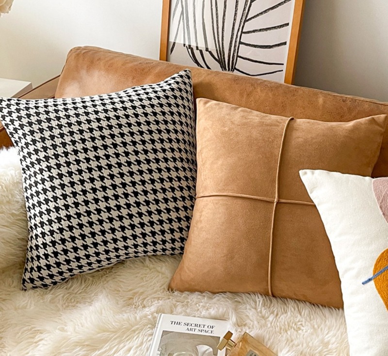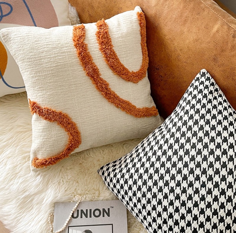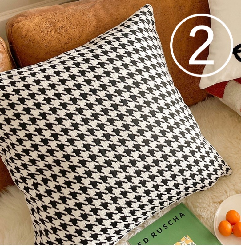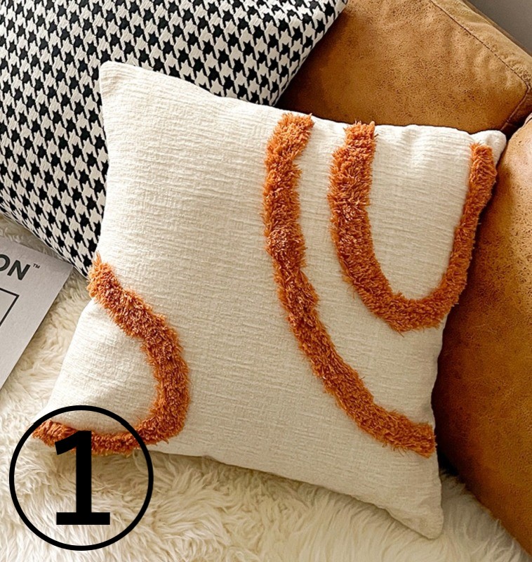 モチーフクッションカバー3デザイン45cm×45cm北欧おしゃれ可愛い洗える四角正方形韓国雑貨インテリア千鳥柄モノクロモノトーンオレンジもこもこムートンブラウンベージュ総柄白ホワイト黒ブラック