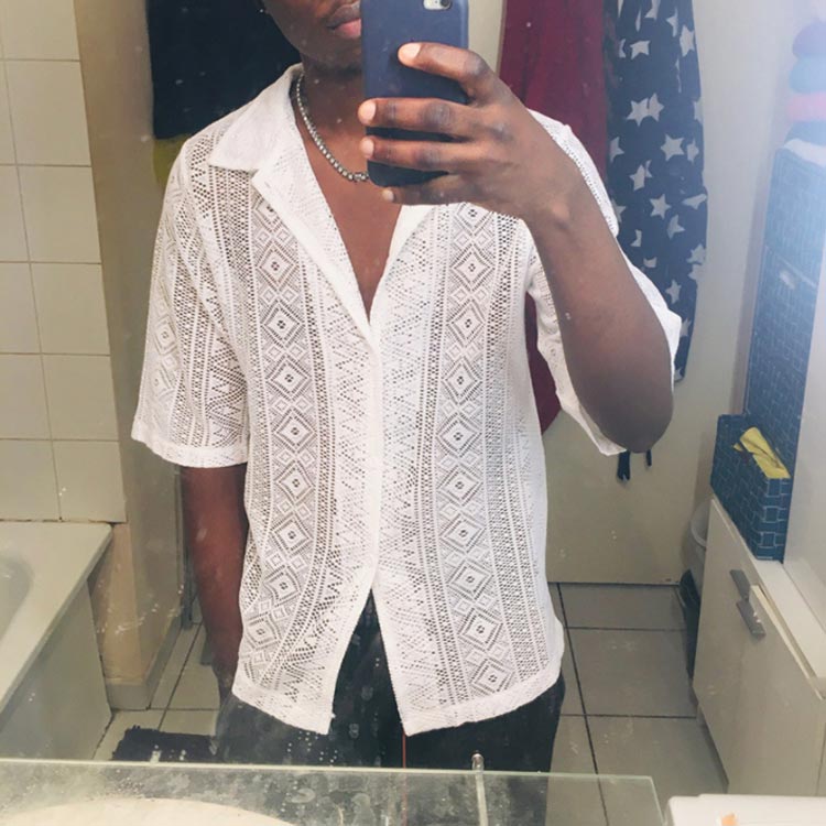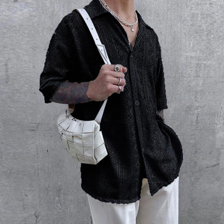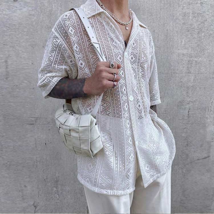 セクシー シャツ 透かし編み 半袖 メ