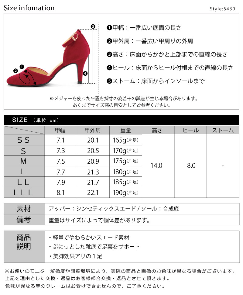 サイズ: SS(22.5cm) S(23.0cm) M(23.5cm) L(24.0cm) LL(24.5cm) LLL(25.0cm)