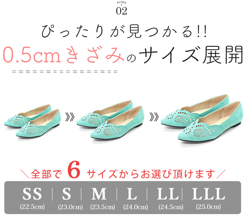 サイズ: SS(22.5cm) S(23.0cm) M(23.5cm) L(24.0cm) LL(24.5cm) LLL(25.0cm)