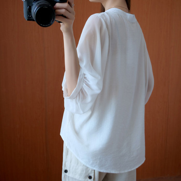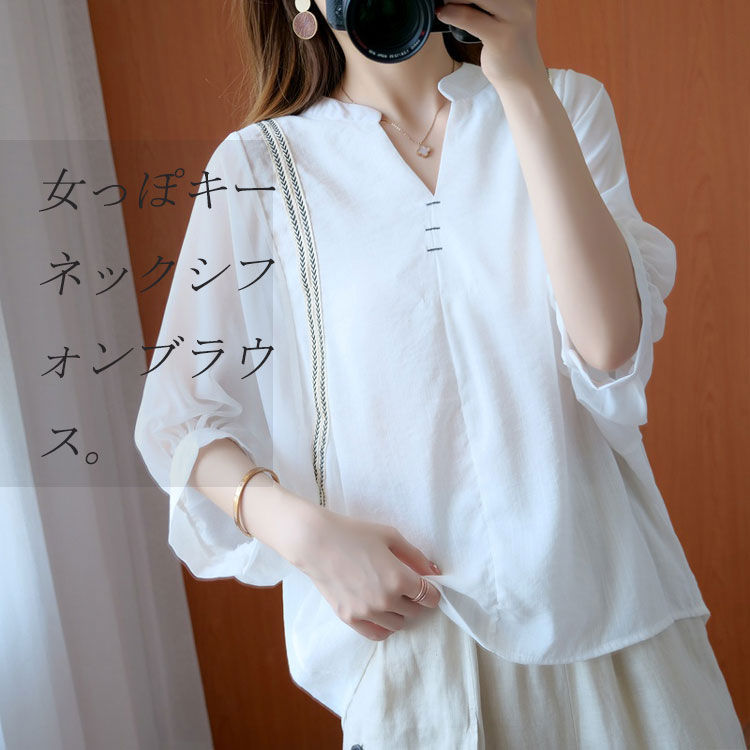 シフォンブラウス シアーブラウス ボリューム袖