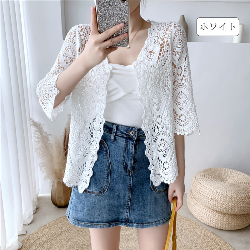 夏コーデ 総レース レディースジレ レ