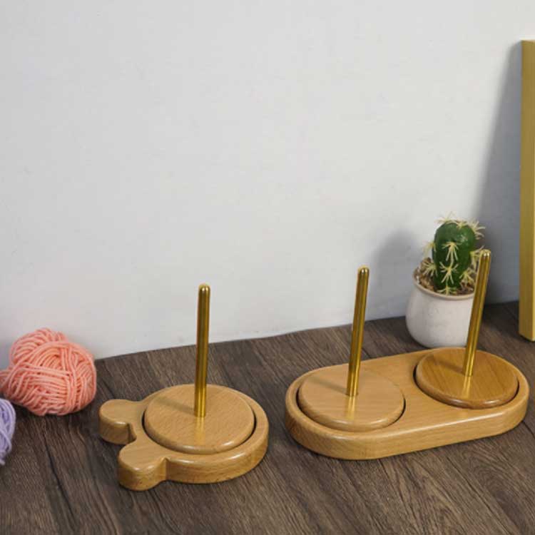 回転木製糸ホルダー 糸ラック 編み物ツ