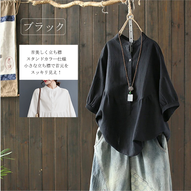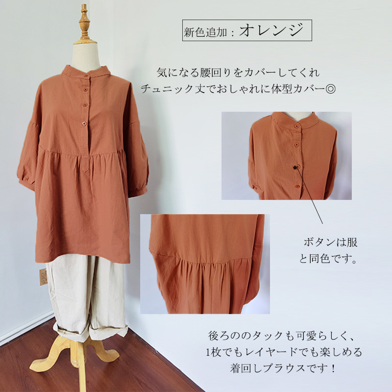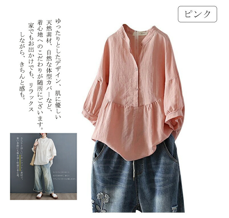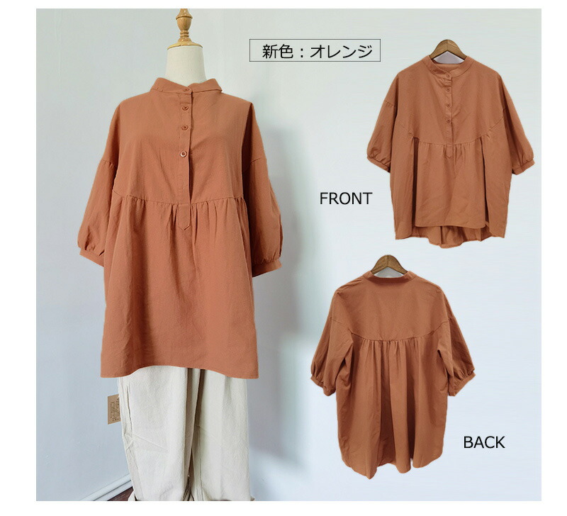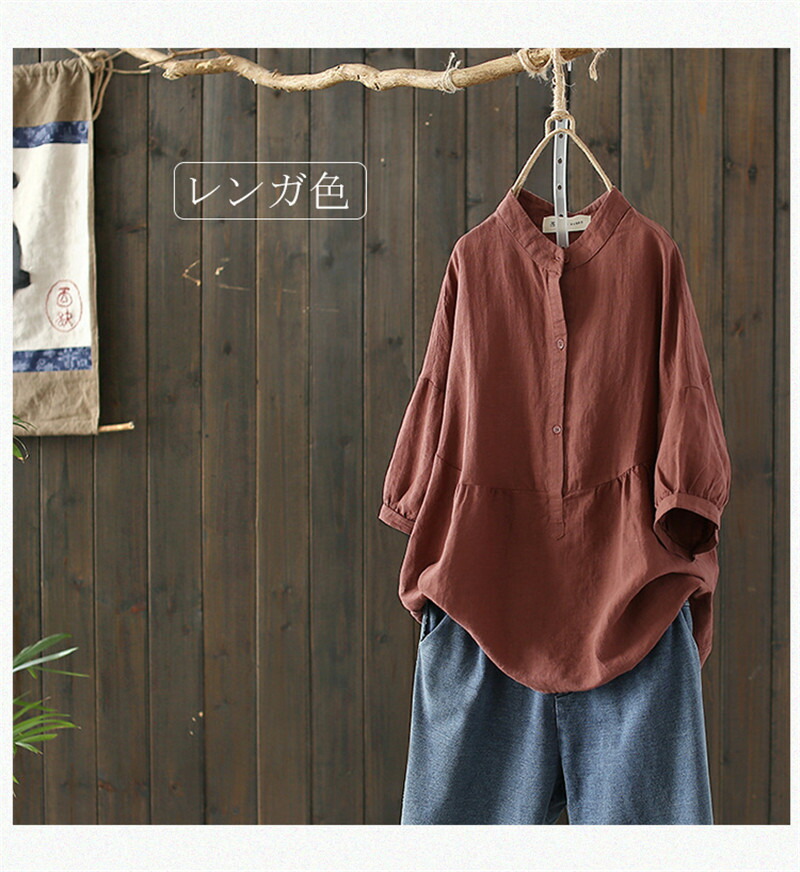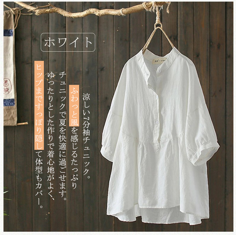 チュニック 綿 夏 秋 リネンシャツ