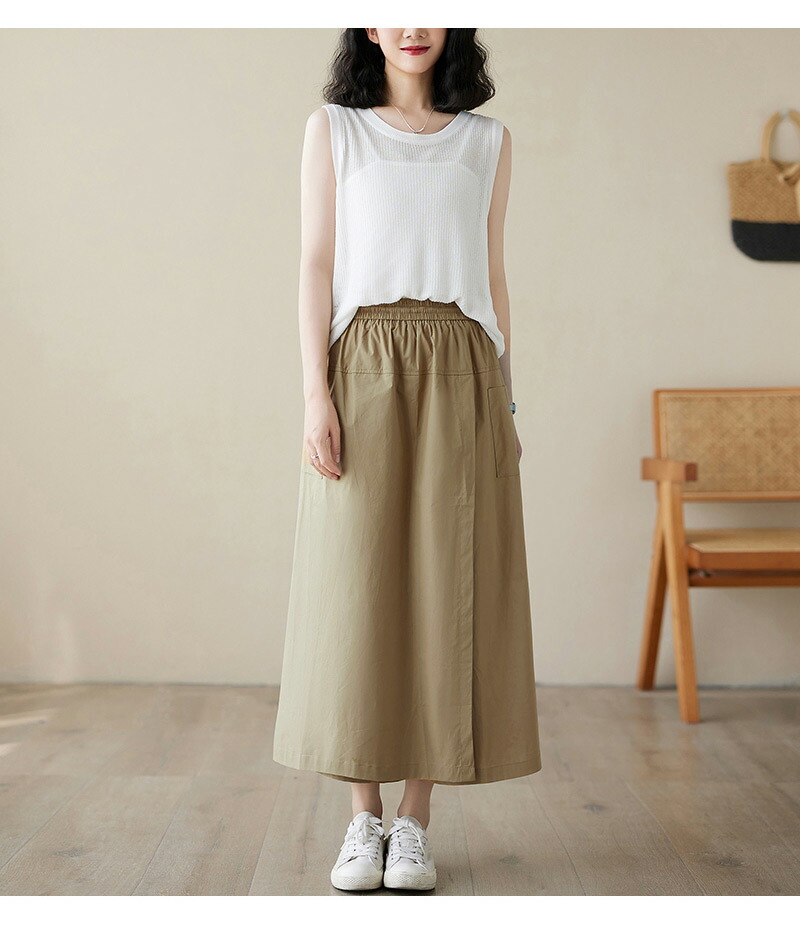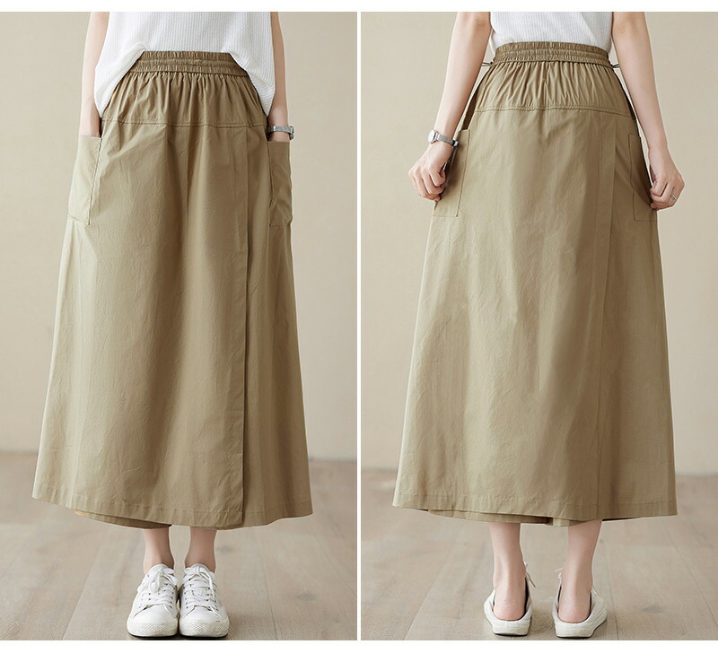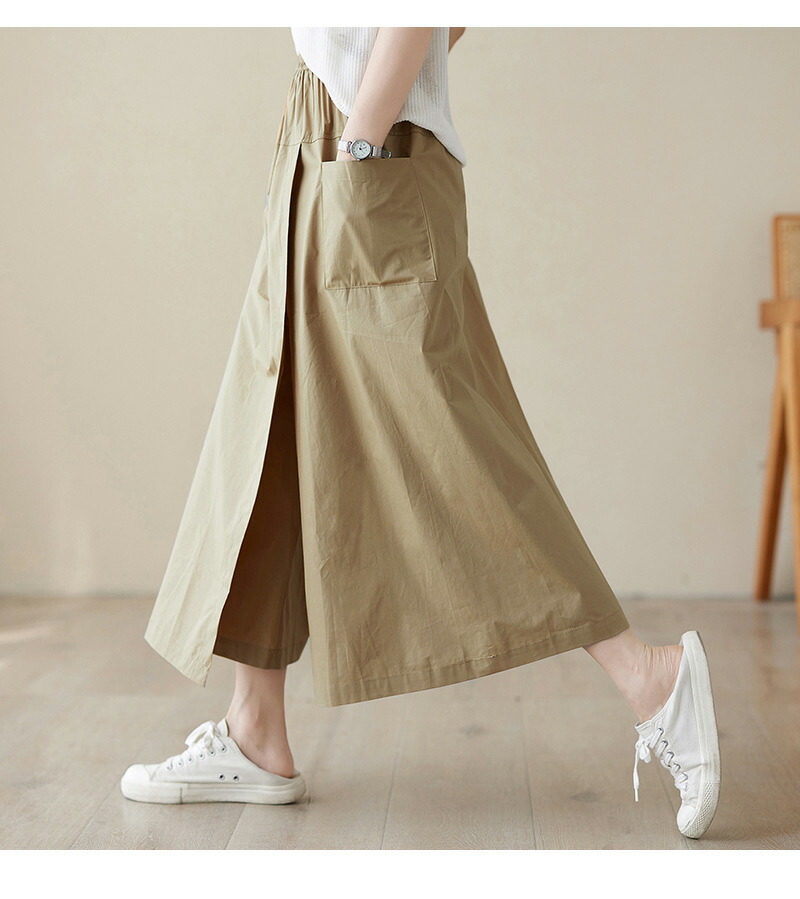 前から見ると巻きスカートのように見える