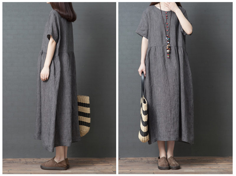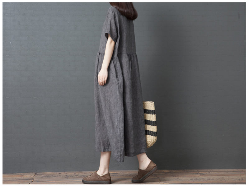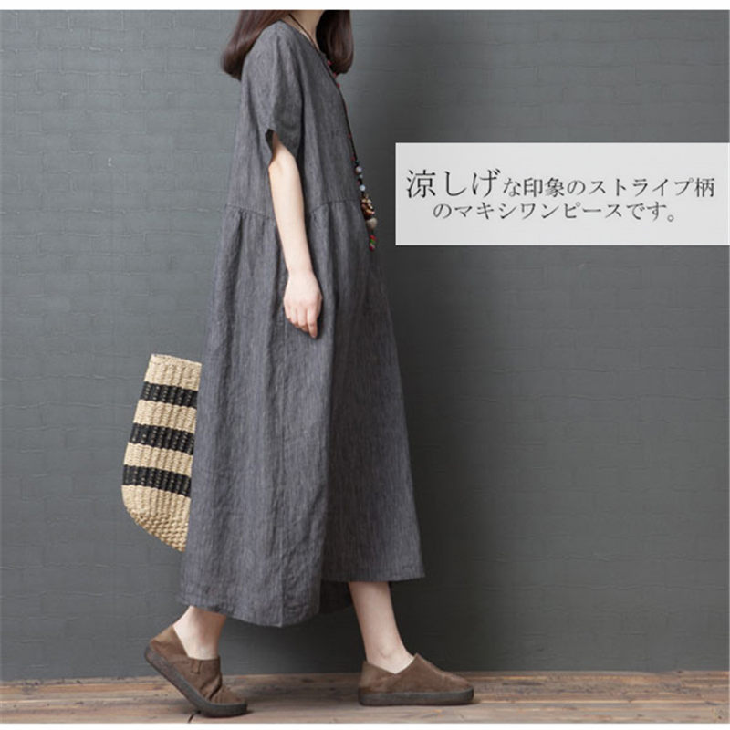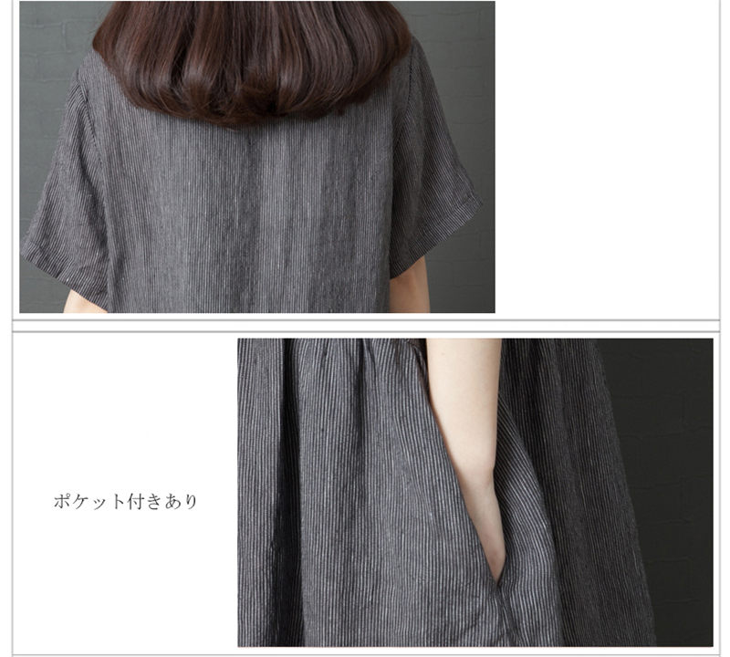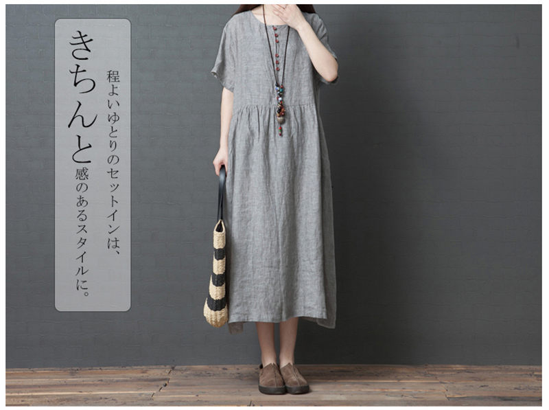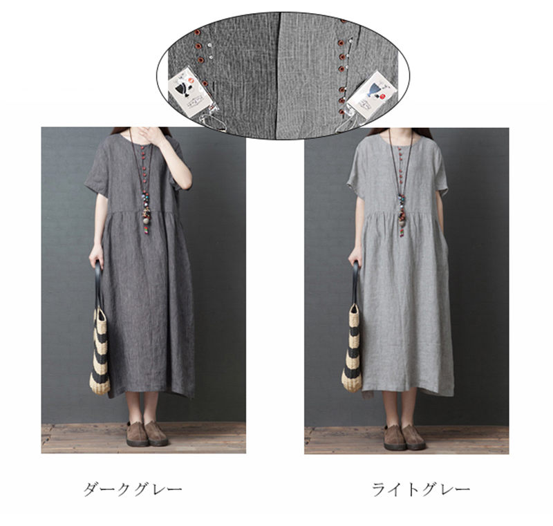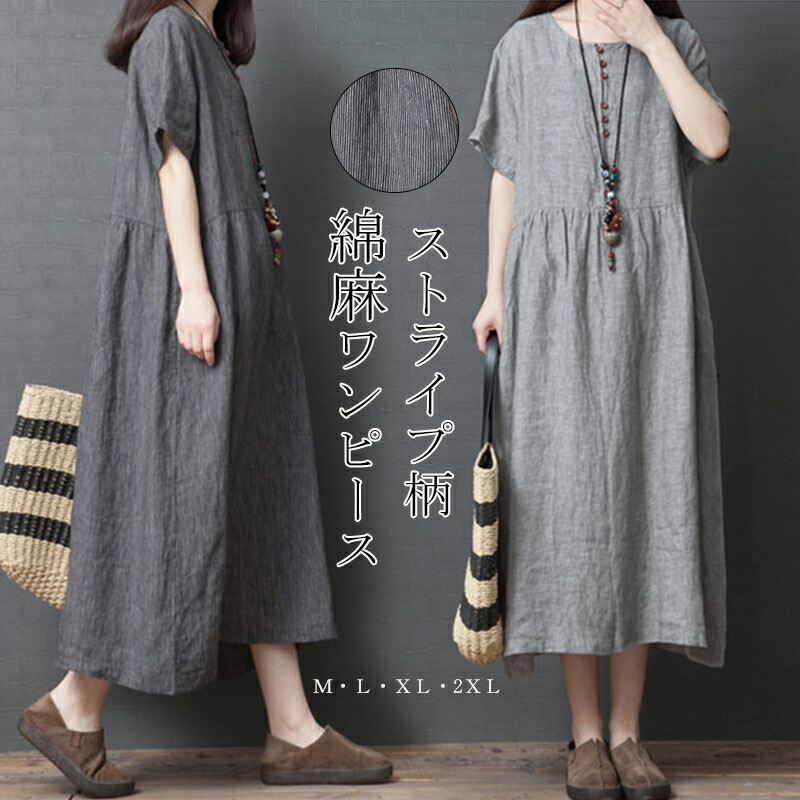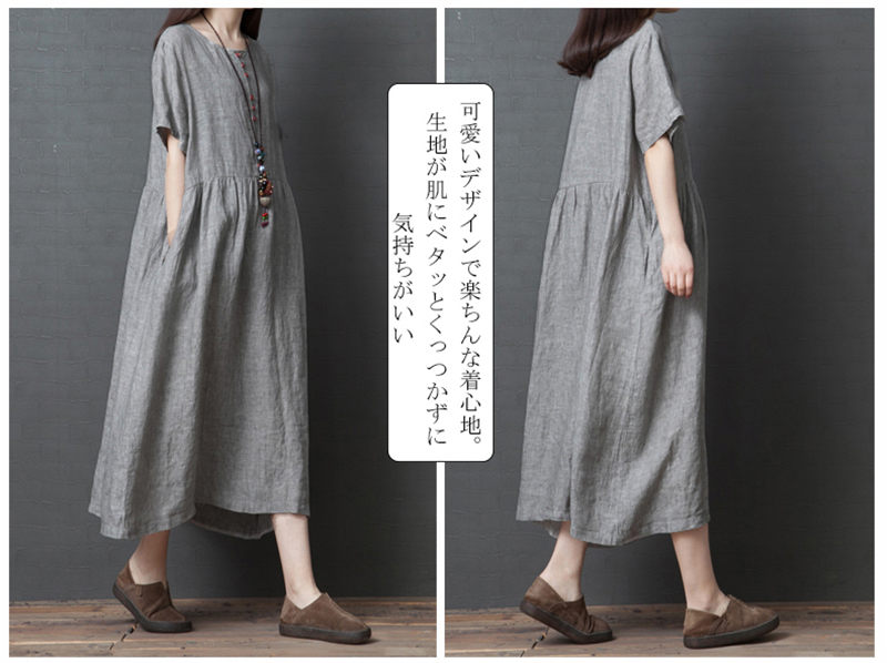 マキシワンピース 綿麻 夏ワンピ 半袖