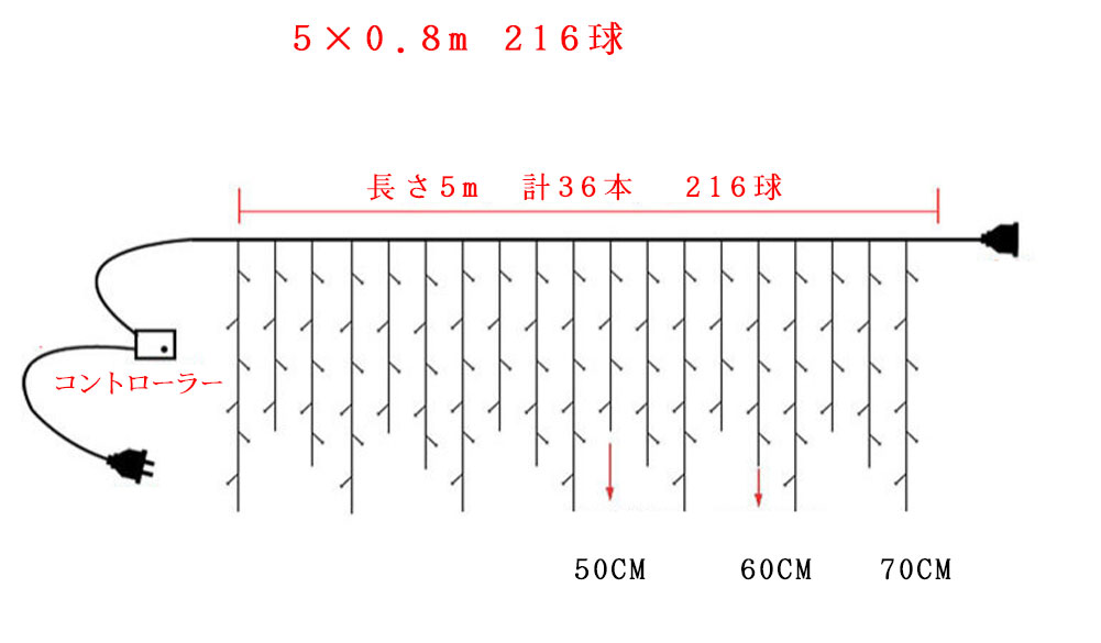 LEDイルミネーションライト波型 カーテンライト つららライト 5*0.8m 216球 ストリングライト インテリアライト クリスマス 飾り 防水 屋外対応 8種点灯モード
