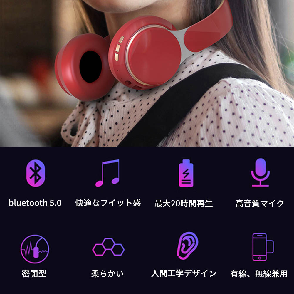 ワイヤレスヘッドホン ヘッドホン bluetooth5.0 密閉型 無線 有線対応 高性能 騒音抑制 重低音強化 軽量 通気 モニターヘッドホン 楽器練習 音楽 映画鑑賞 男女兼用