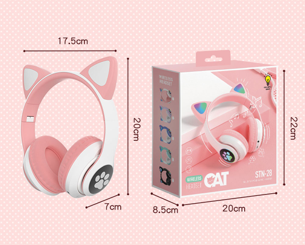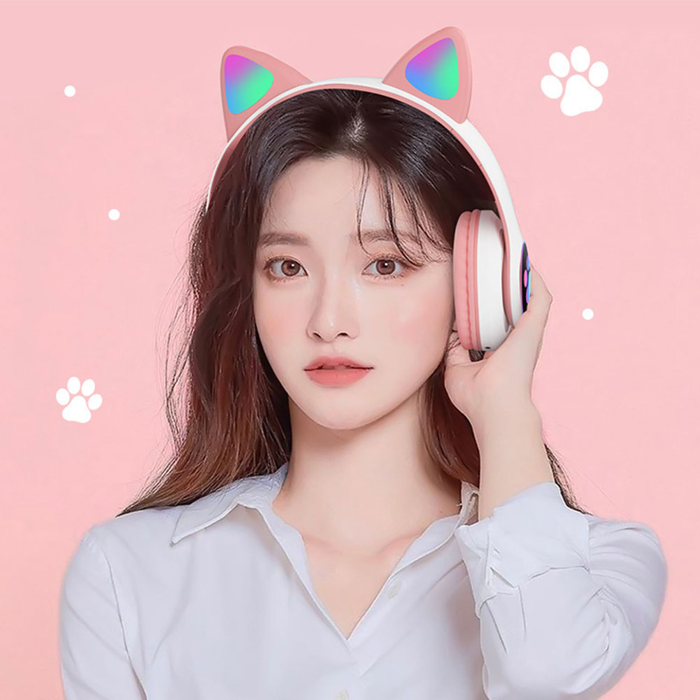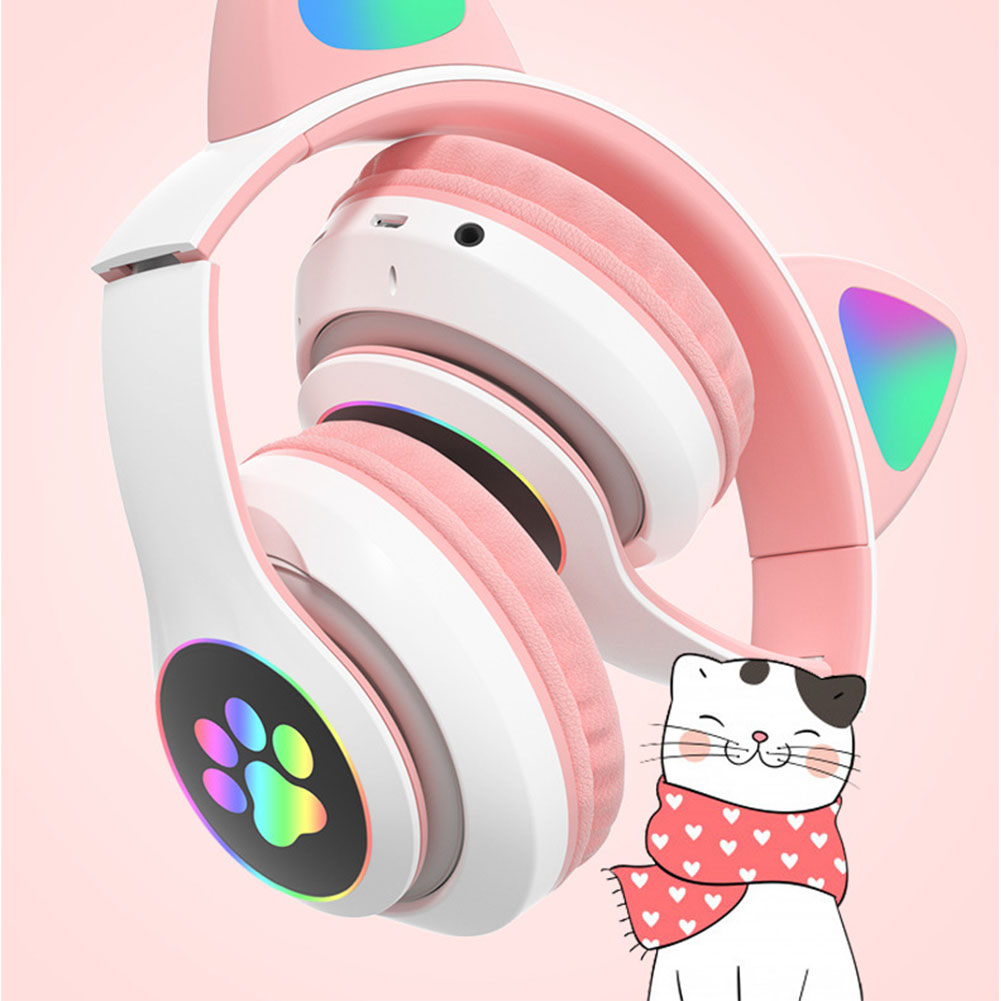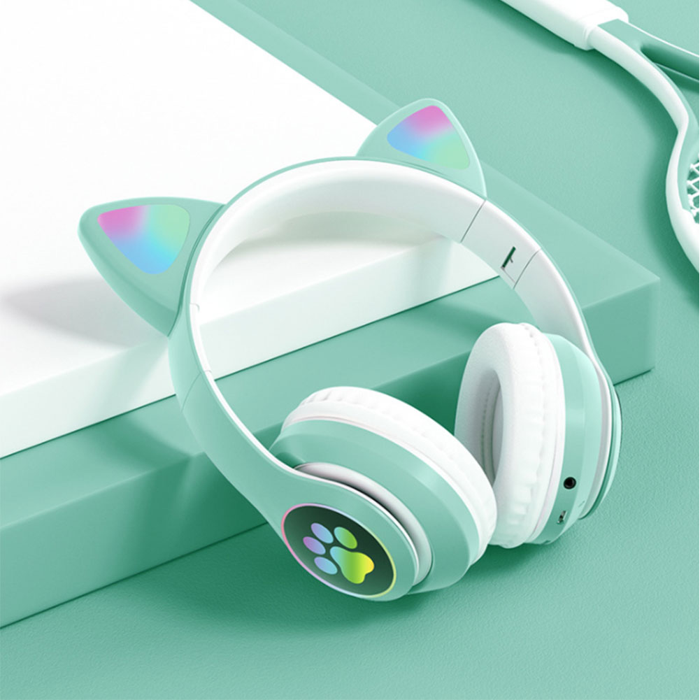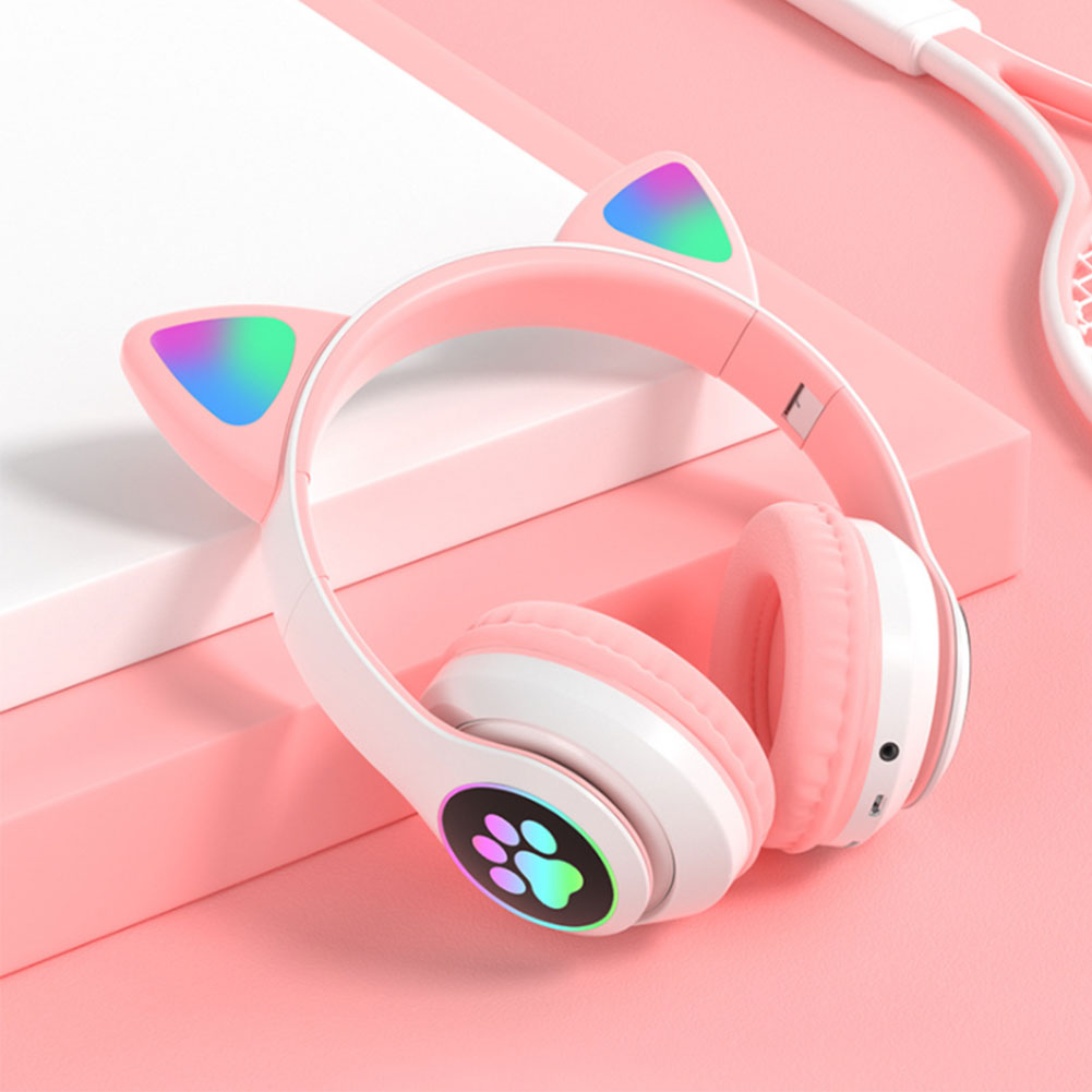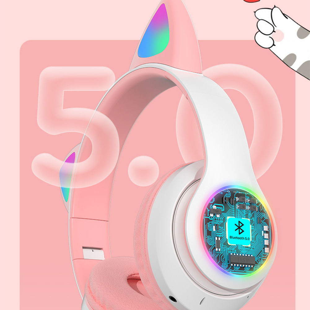 猫耳ヘッドホン 子供用 ヘッドホン Bluetooth5.0 LED付き ワイヤレス マイク内蔵 折り畳み式 音量制御 聴力保護 コンパクト 柔軟 かわいい iPhone iPad スマホ ノートパソ