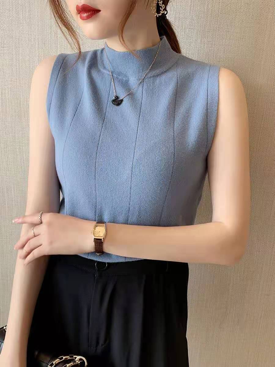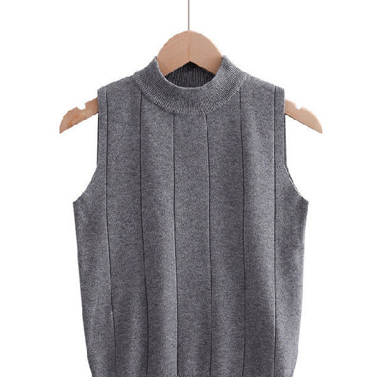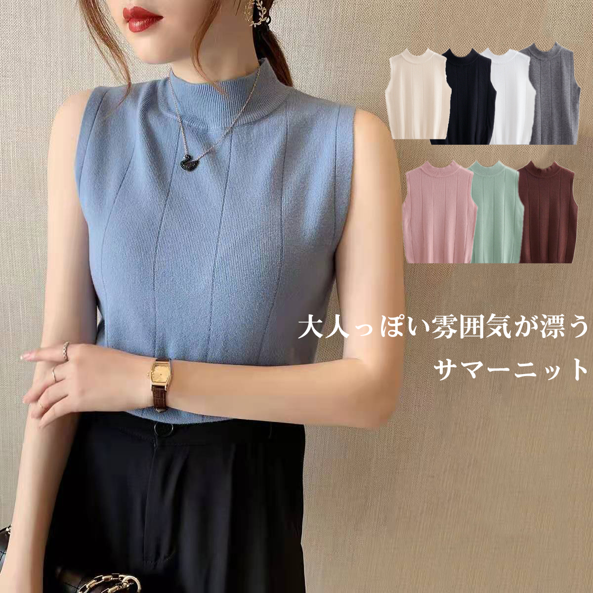 細見え効果あるリブニット ノースリーブ