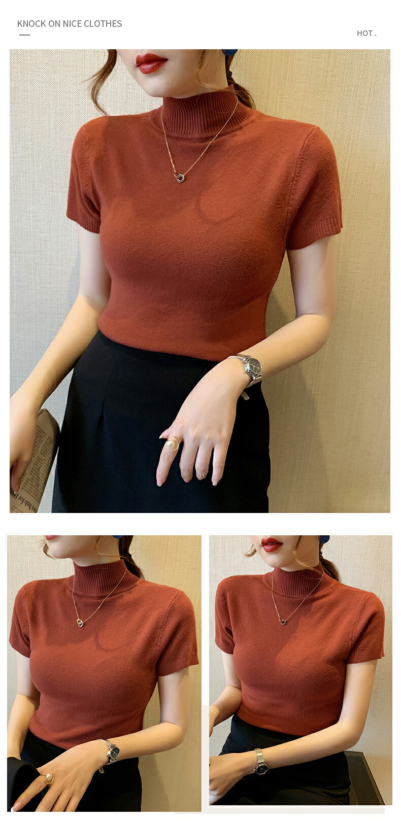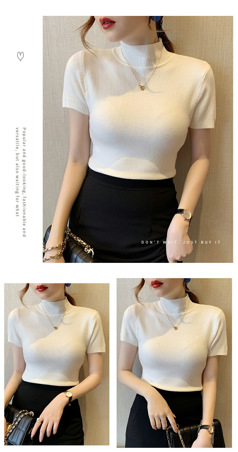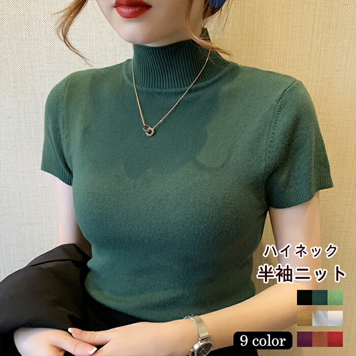 細見え効果あるリブニット 半袖 レディ