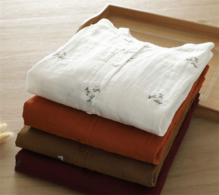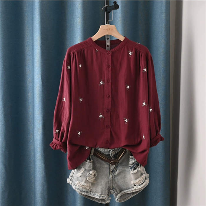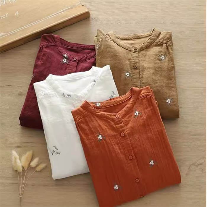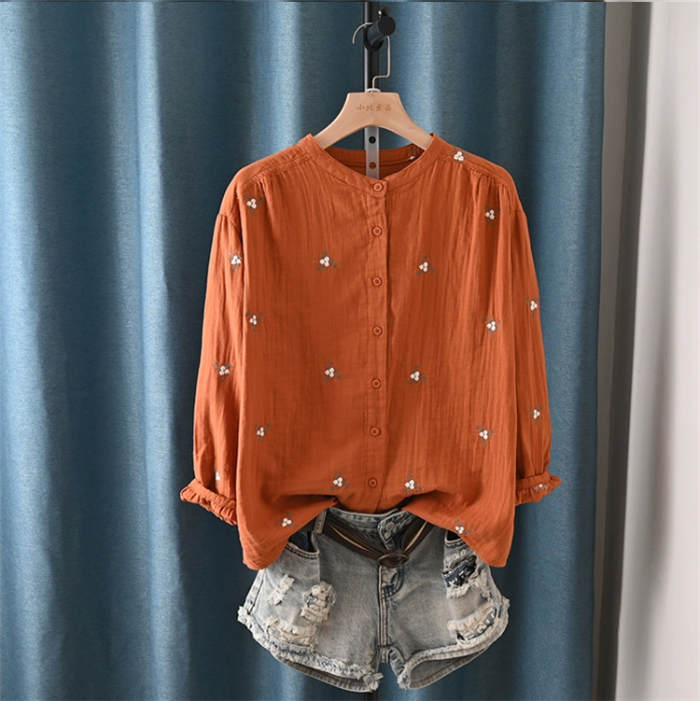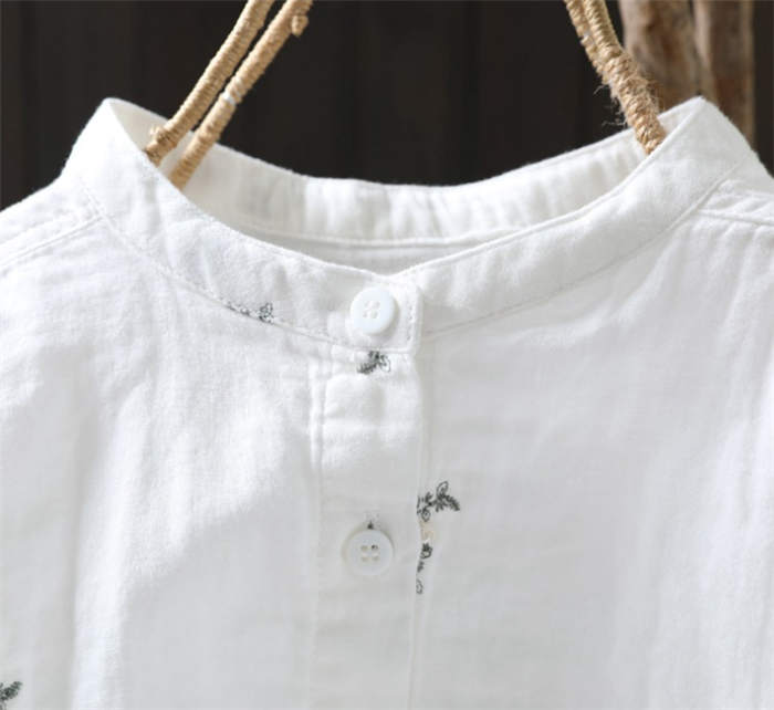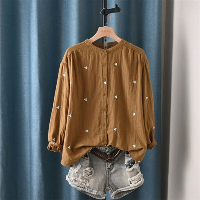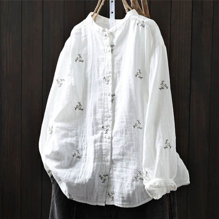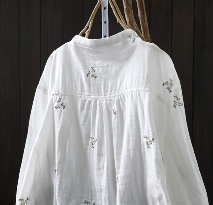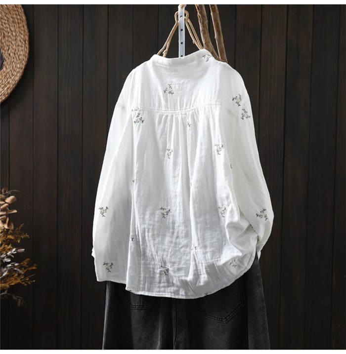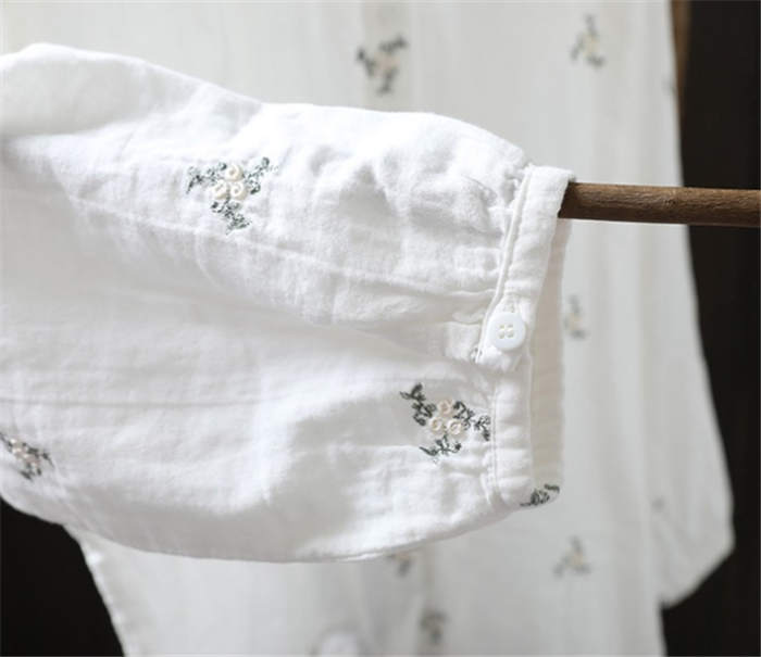 花柄 刺繍 ガーゼ シャツ 長袖 バン