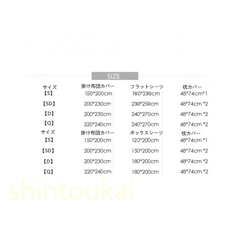 【S】掛け布団カバー150*200cm フラットシーツ160*230cm 枕カバー48*74cm*1