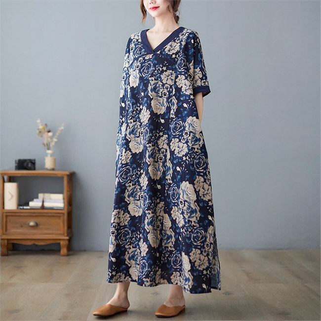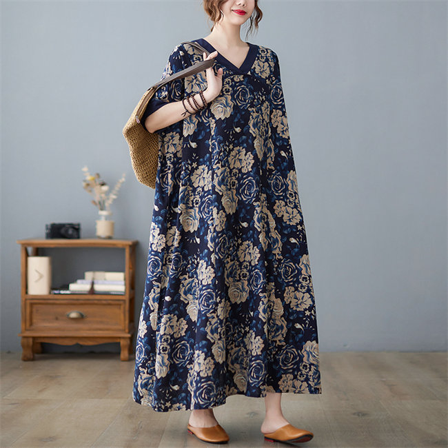 ネイビーレディースロングワンピース マ