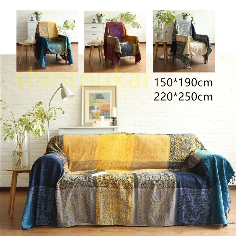 マルチカバー ソファーカバー 肘掛け 肘なし150*190cm 長方形マルチカバー 大判サイズ 民族風マルチカバー おしゃれ 厚手 柔らかい 暖かい 丸洗い 洗濯OK肘付き ずれ防止 汚れ防止 防塵