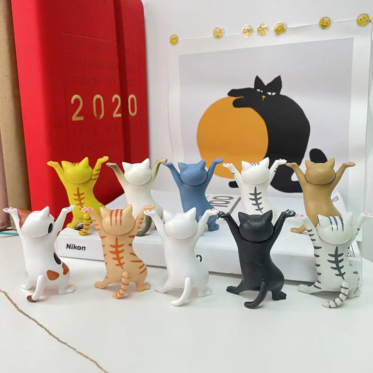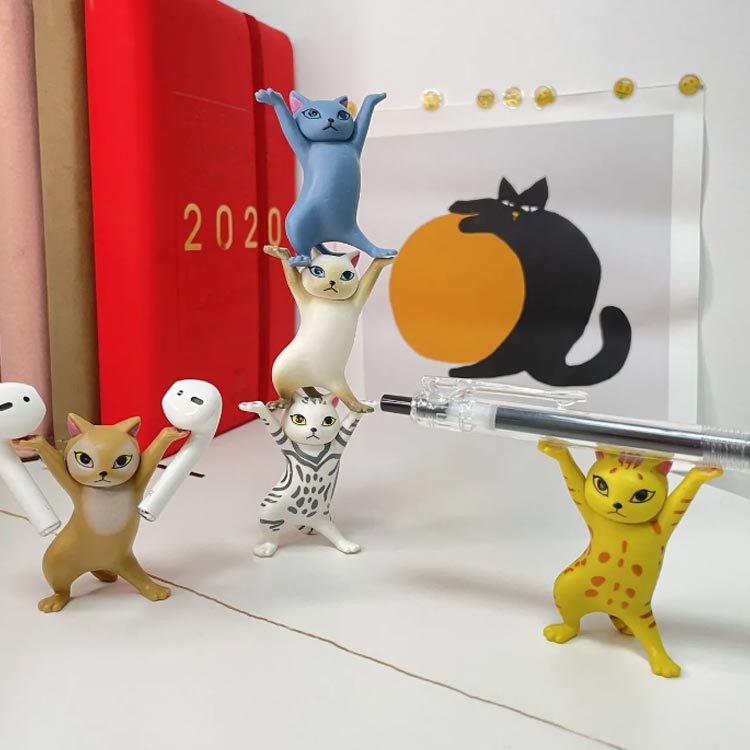 ペンホルダー 置物 モデル ネコ プレゼント 踊る猫 猫のペン立て ぺんおき 猫の置物 小さい ペンホルダー ネコ グッズ 雑貨 ペンたて 10点セット 猫 ヘッドフォンホルダー おしゃれ